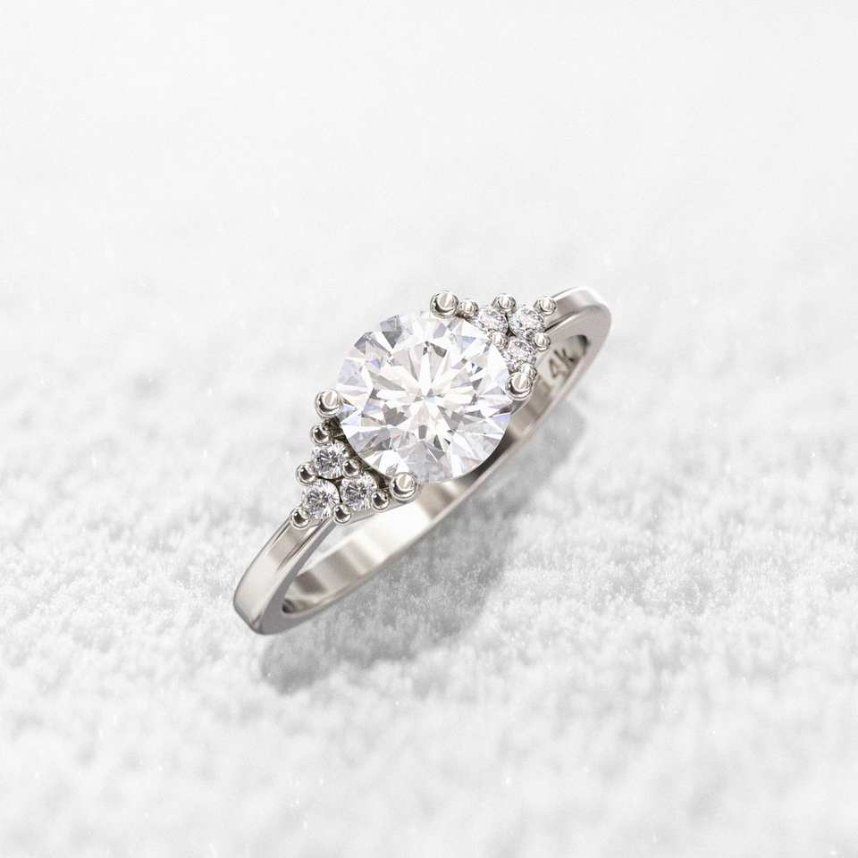 แหวนเพชรโมอิสซาไนต์ทรงกลมแบบพิเศษ ทองคำขาว 18K สำหรับงานหมั้นและงานแต่งงาน ผู้ผลิต OEM