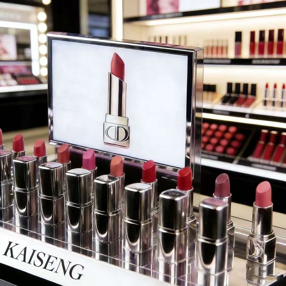 ชั้นวางลิปสติกแบบมีจอ LCD สำหรับร้านค้าโดยเฉพาะ พร้อมจอ LED สำหรับขายส่ง