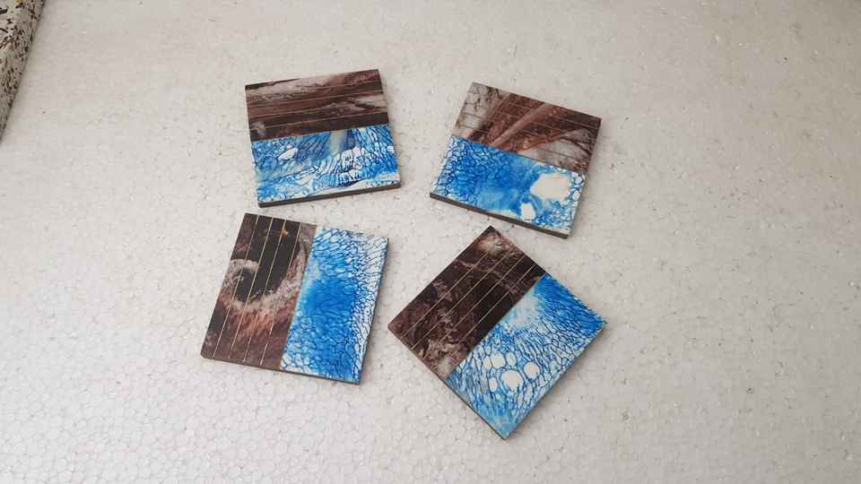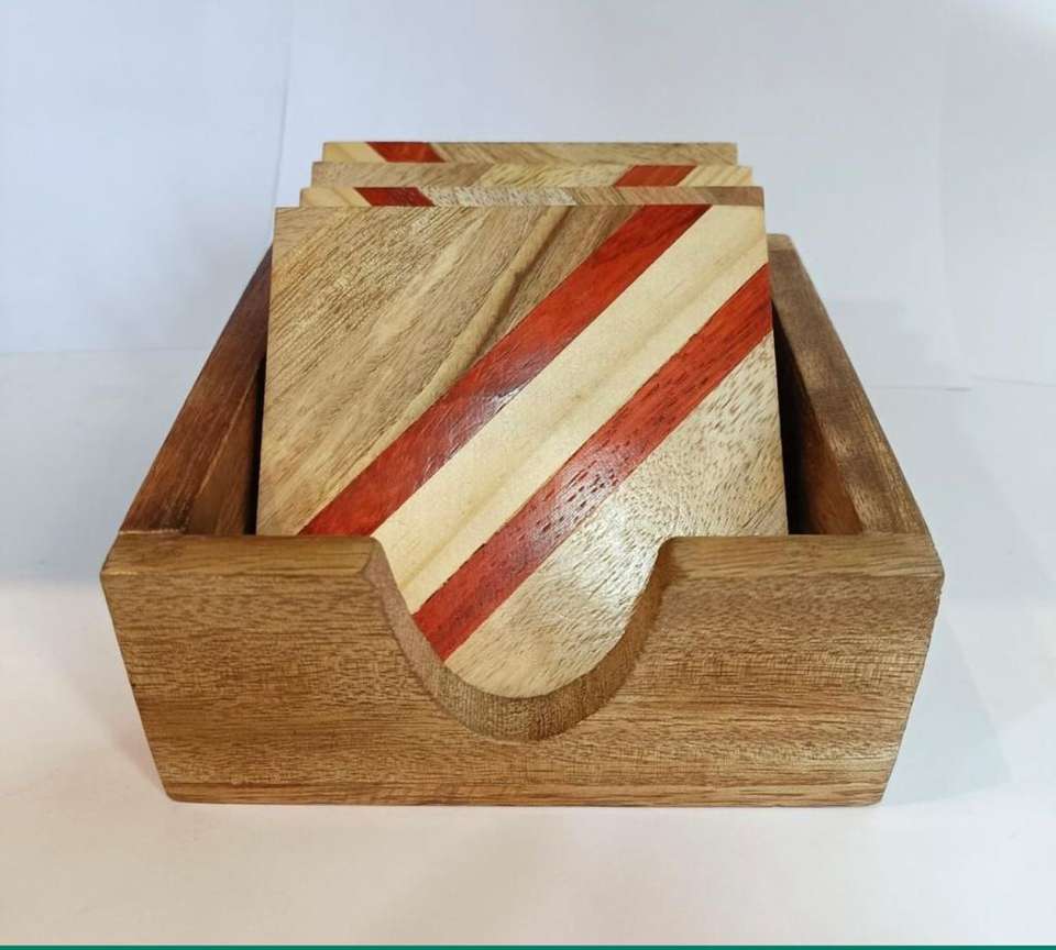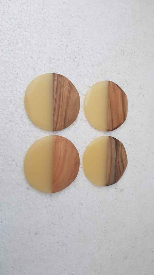 ชุดที่รองแก้วทำจากไม้เนื้อแข็งและเรซิ่นพิเศษ4ชิ้นพร้อมที่จับ-งานฝีมือระดับพรีเมียมและการดึงดูดความสนใจเหนือกาลเวลา