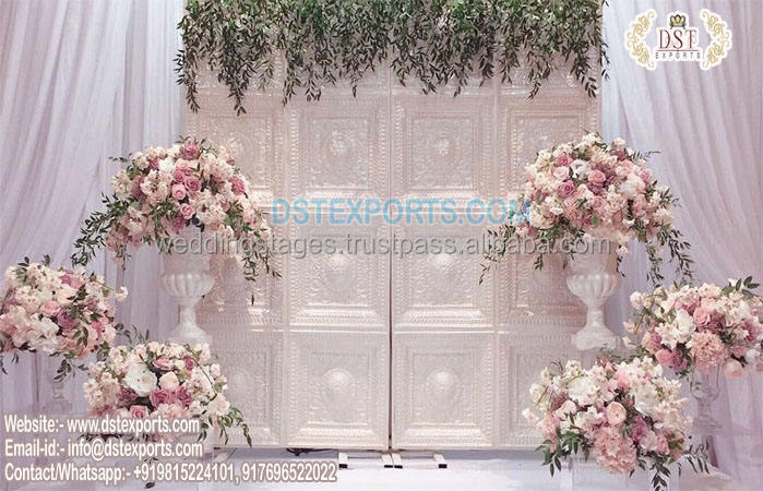 ฉากหลังงานแต่งงานแบบอินเดียใต้ แผงตกแต่งลายฉลุใยแก้วสีทอง โครงตกแต่งงานแต่งงานแบบดั้งเดิม สเปน