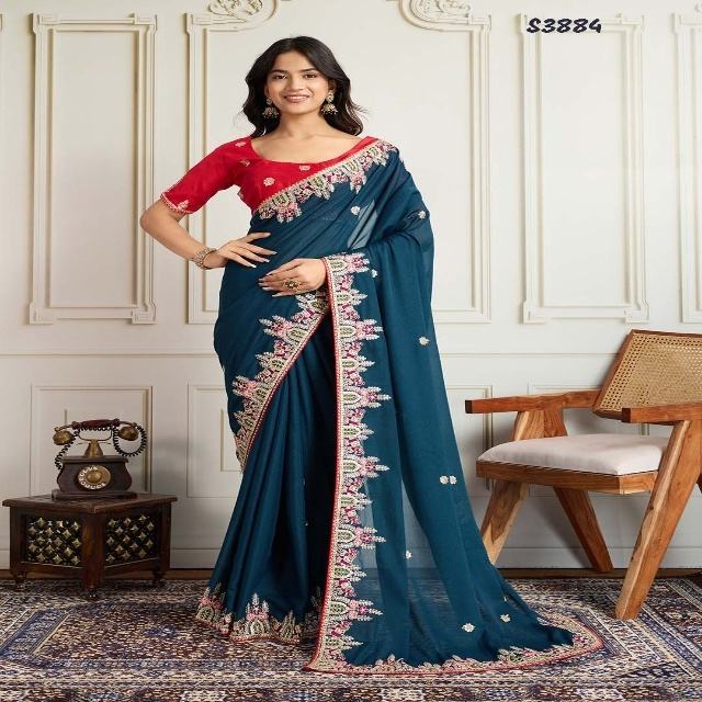 Product Name:Exclusive Star Georgette With Embroidery Work Saree