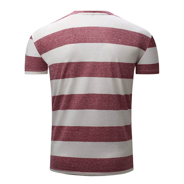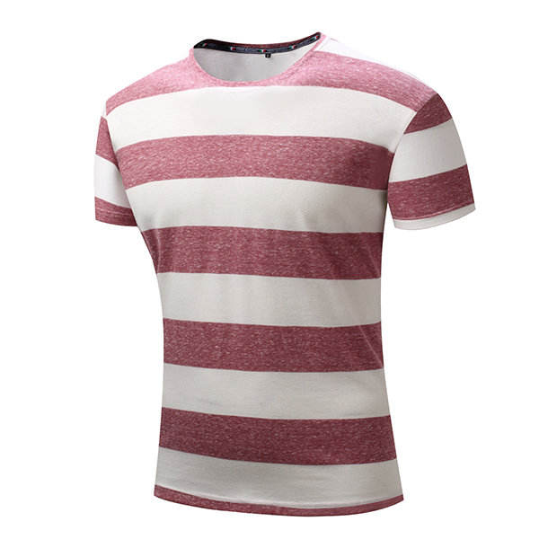 เสื้อยืดแขนสั้นลายทางคลาสสิกสำหรับผู้ชายผ้าถักน้ำหนักเบามีสไตล์เพื่อความสบายในทุกๆวัน