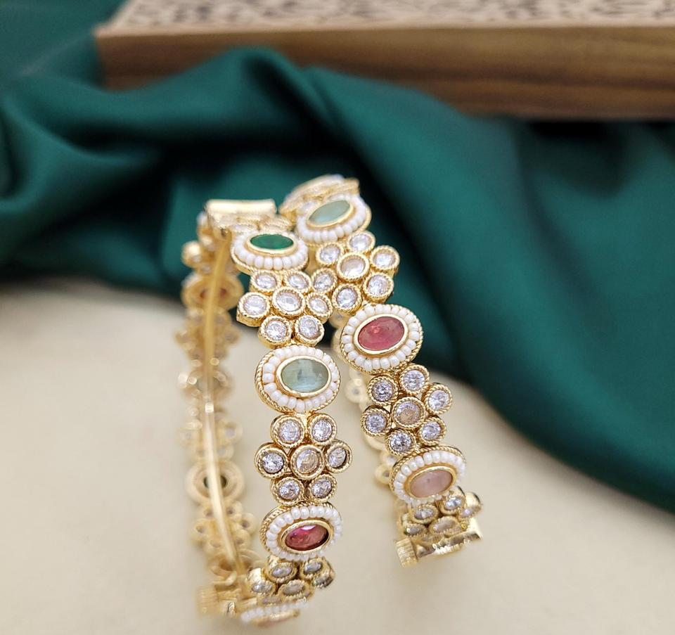 กำไลสองชุดสำหรับผู้หญิงสำหรับสวมใส่ในงานแต่งงานทำจากทองมีสไตล์สุดพิเศษพร้อมหิน