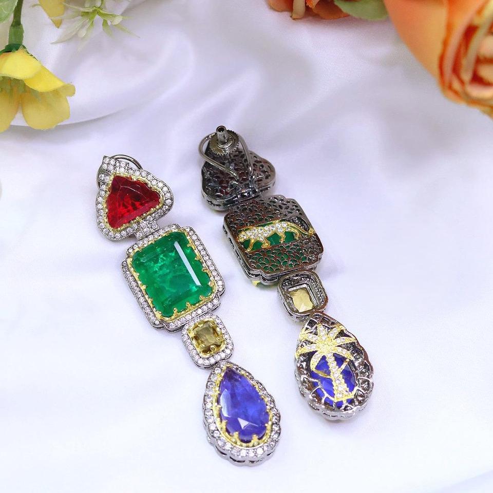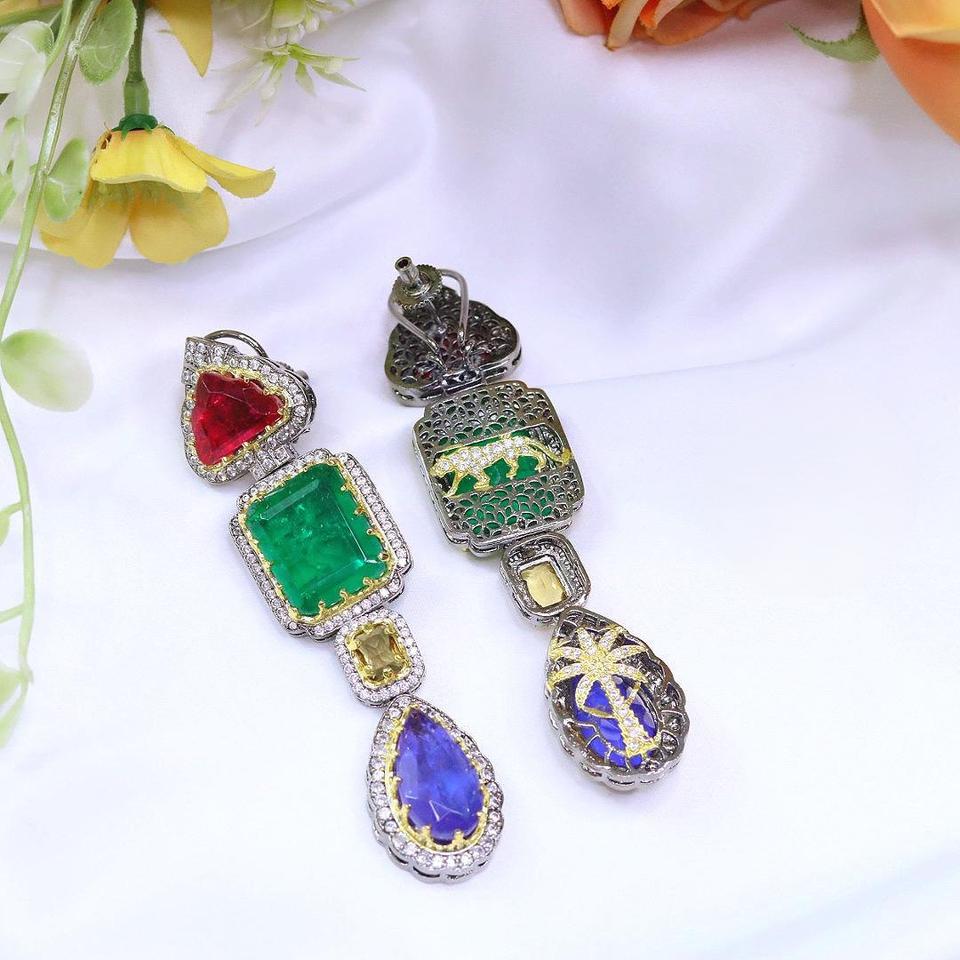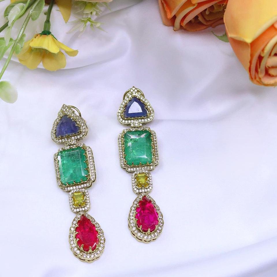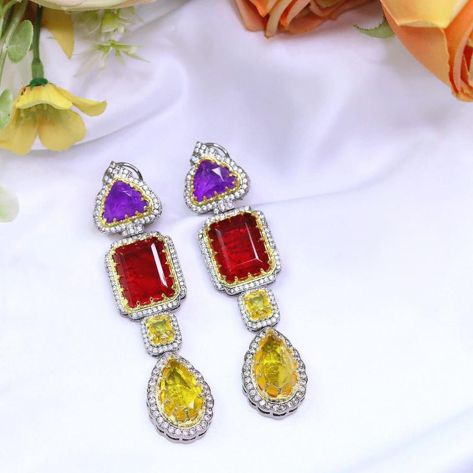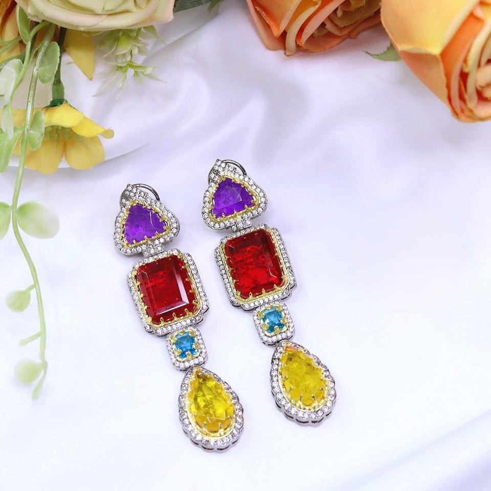 ต่างหูทองเหลืองชุบเงินประดับเพชร CZ ดีไซน์หรูหราทันสมัยสำหรับงานแต่งงานของผู้หญิง
