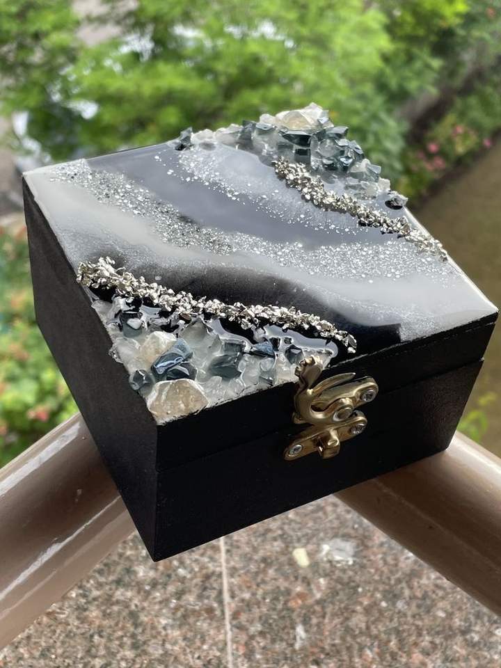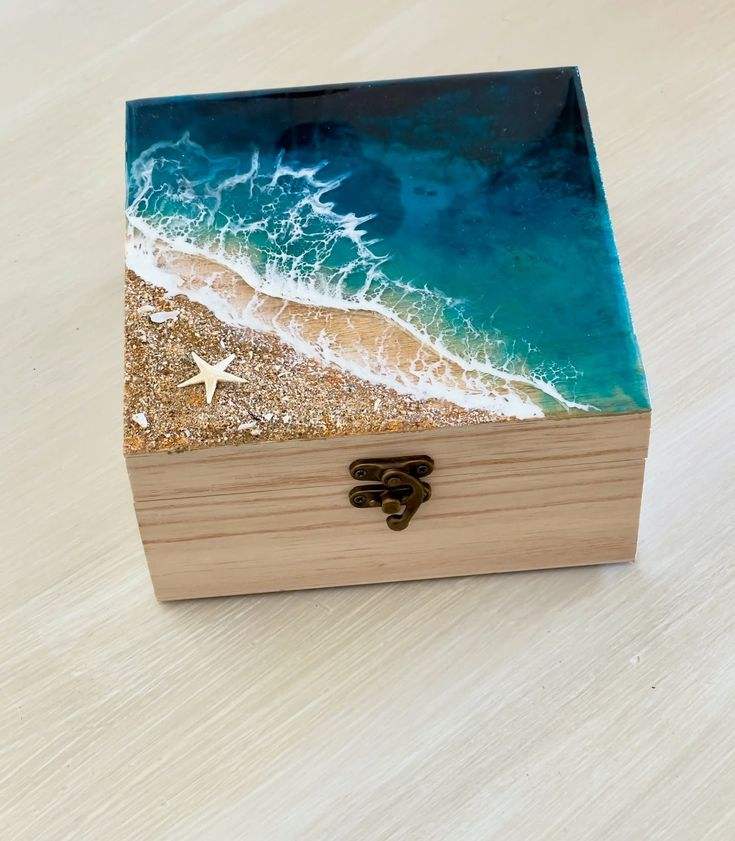 กล่องเรซิ่นฝังลาย TIME 2 DECOR แบบพิเศษ - ปรับแต่งขนาด/สี/ดีไซน์ได้ งานฝีมือดั้งเดิม รูปทรงสี่เหลี่ยมผืนผ้าลายดอกไม้ สำหรับงานแต่งงาน