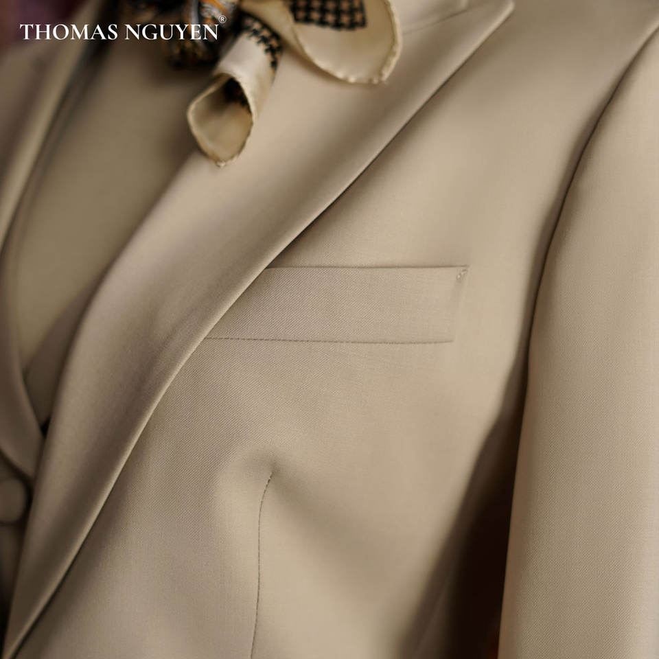 [สินค้าพิเศษ] "Powerful Lead" ชุดสูทสามชิ้นสีเบจ - คอลเลกชันสำหรับผู้หญิง | ผลิตด้วยมือในเวียดนาม