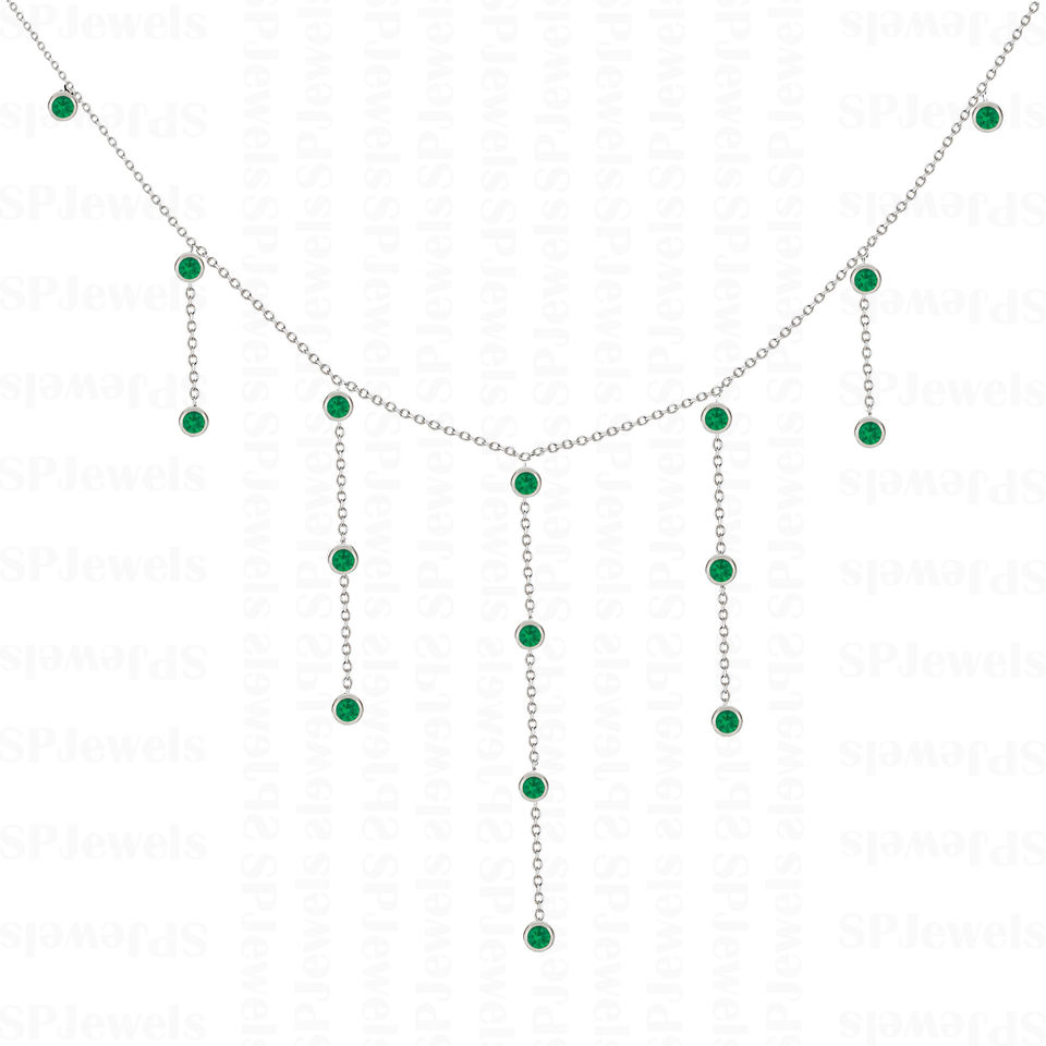 สร้อยคอช็อกเกอร์แบบโซ่ทองคำแท้ 18K สีเหลืองทอง ประดับมรกตธรรมชาติ ดีไซน์พู่ห้อยระย้า เหมาะสำหรับงานแต่งงาน
