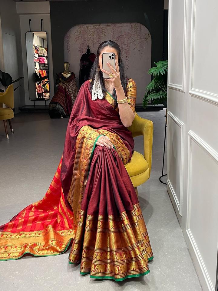 Product Name:Cotton Saree Blouse With Zari Weaving Work