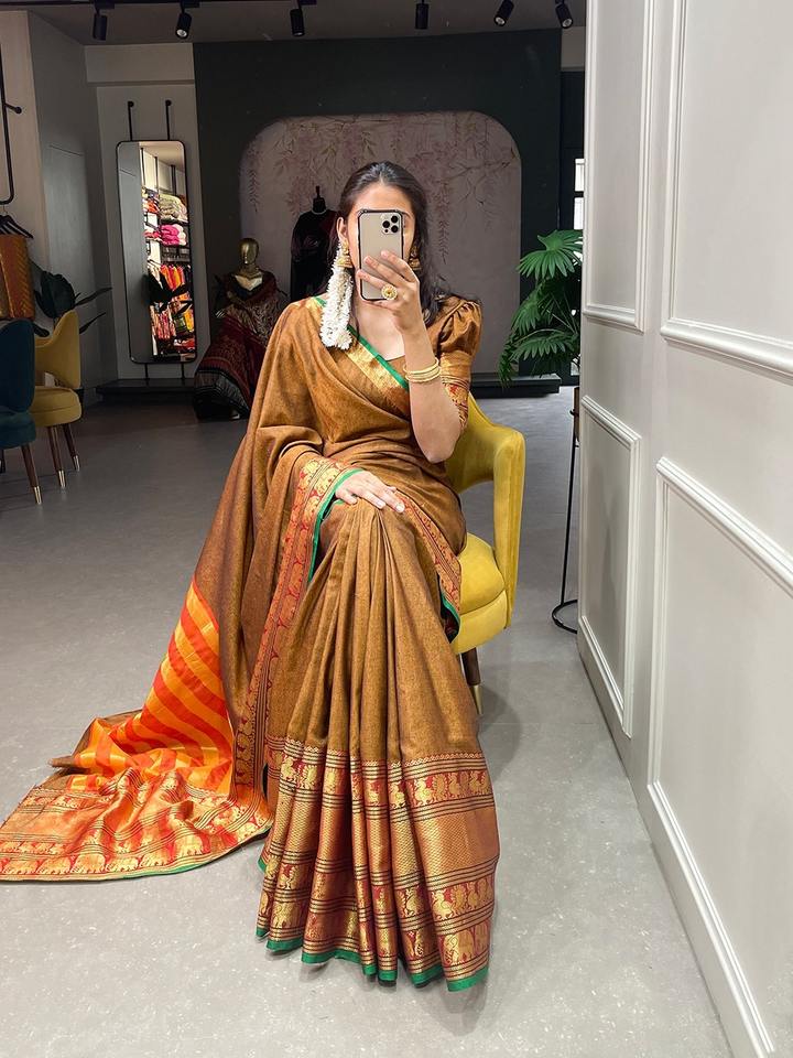 Cotton Saree Blouse With Zari Weaving Work