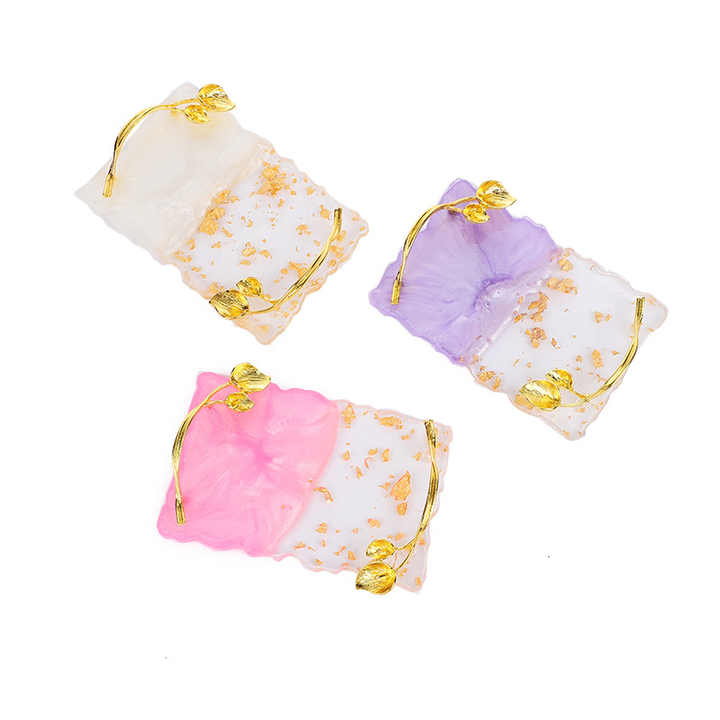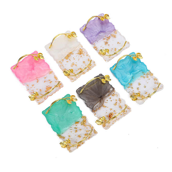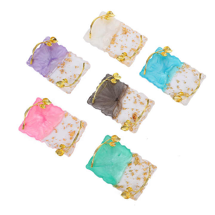 ถาดเสิร์ฟเรซินรูปแบบใบไม้หรูหราสไตล์วินเทจจานขนมกาแฟของหวานที่ทนทานของตกแต่งด้ามไม้