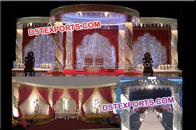 เสาขวดสีขาวพิเศษสำหรับงานแต่ง,Mandap ตกแต่งงานแต่งงานหรูหราไฟ LED คริสตัล Mandap สีขาว Mandap สำหรับงานแต่งงาน