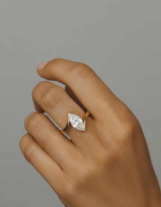 แหวนหมั้นเพชรทรงมาร์ควิส 2 กะรัต เกรด E VVS เพชรเลี้ยงในห้องปฏิบัติการ ได้รับการรับรองจาก IGI สำหรับผู้หญิง ทองคำแท้ 10K