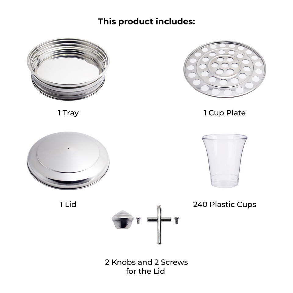 ชื่อผลิตภัณฑ์และคำอธิบาย:ถาดคู่พร้อมชุดศีลมหาสนิท 80 ถ้วย พร้อมวงแหวนด้านล่าง