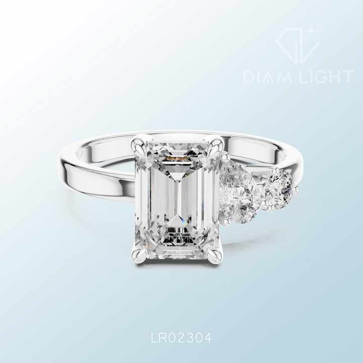 แหวนเพชรทรงเหลี่ยมมรกต รับรองโดย IGI ประดับเพชรสามเม็ด ทอง 14K เพชรเพาะเลี้ยงในห้องปฏิบัติการ แหวนหมั้น สี F+ ความสะอาด VS+