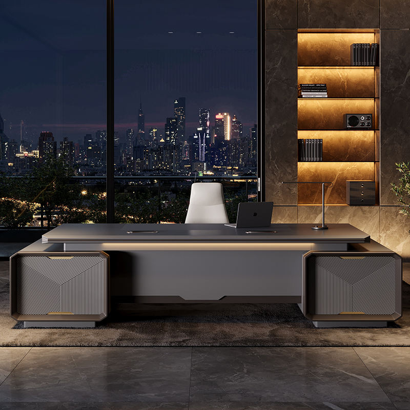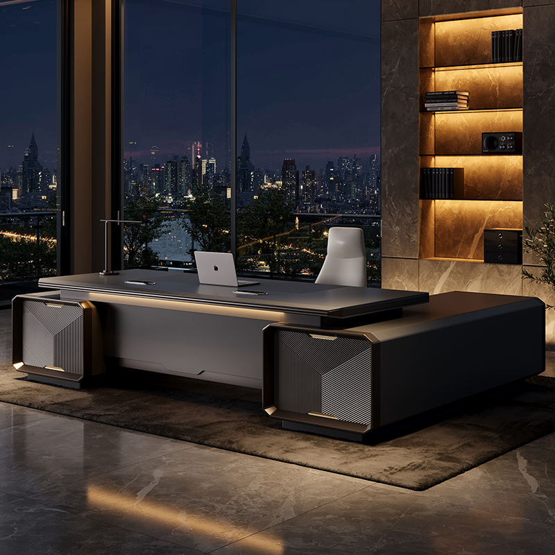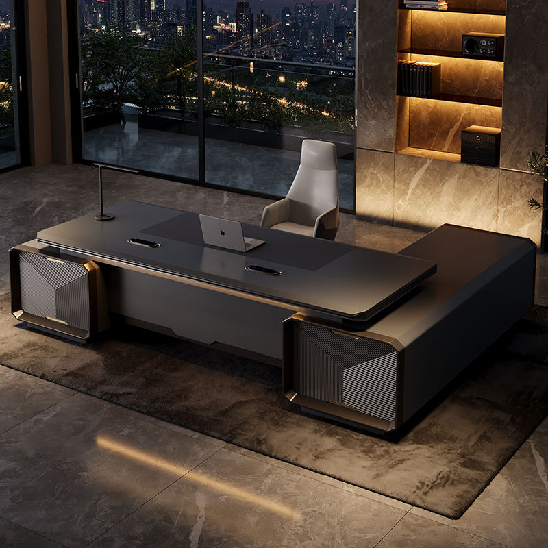 ชุดโต๊ะและเก้าอี้สำนักงานระดับไฮเอนด์สำหรับผู้บริหารหรูหราทันสมัยประธานผู้นำแผงโต๊ะคอมพิวเตอร์ขนาดใหญ่สไตล์ไม้