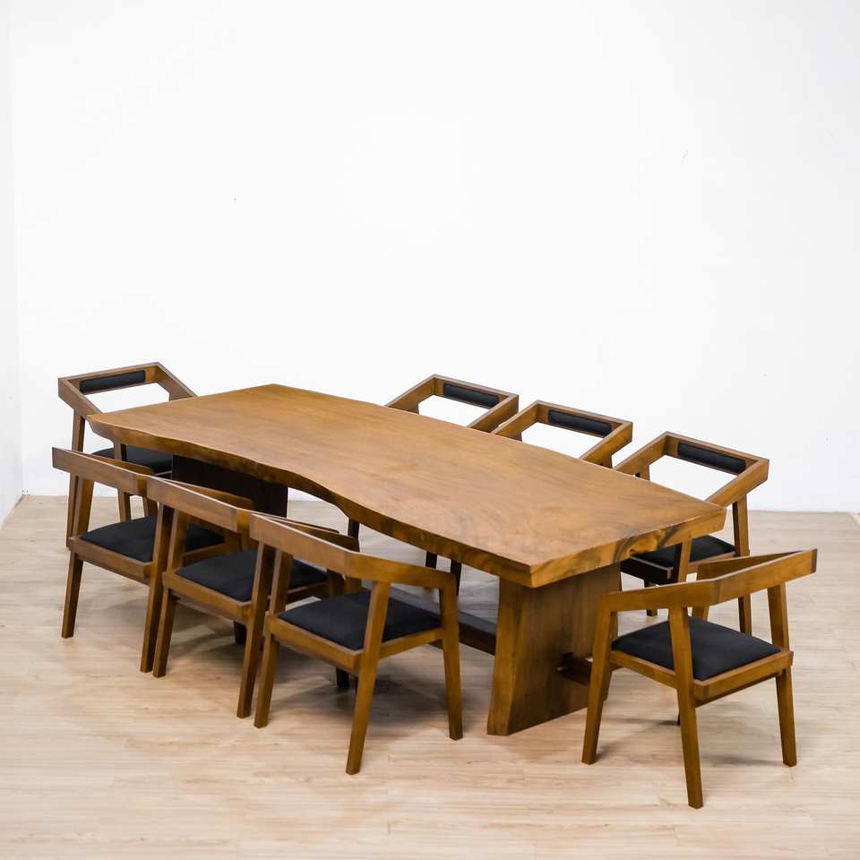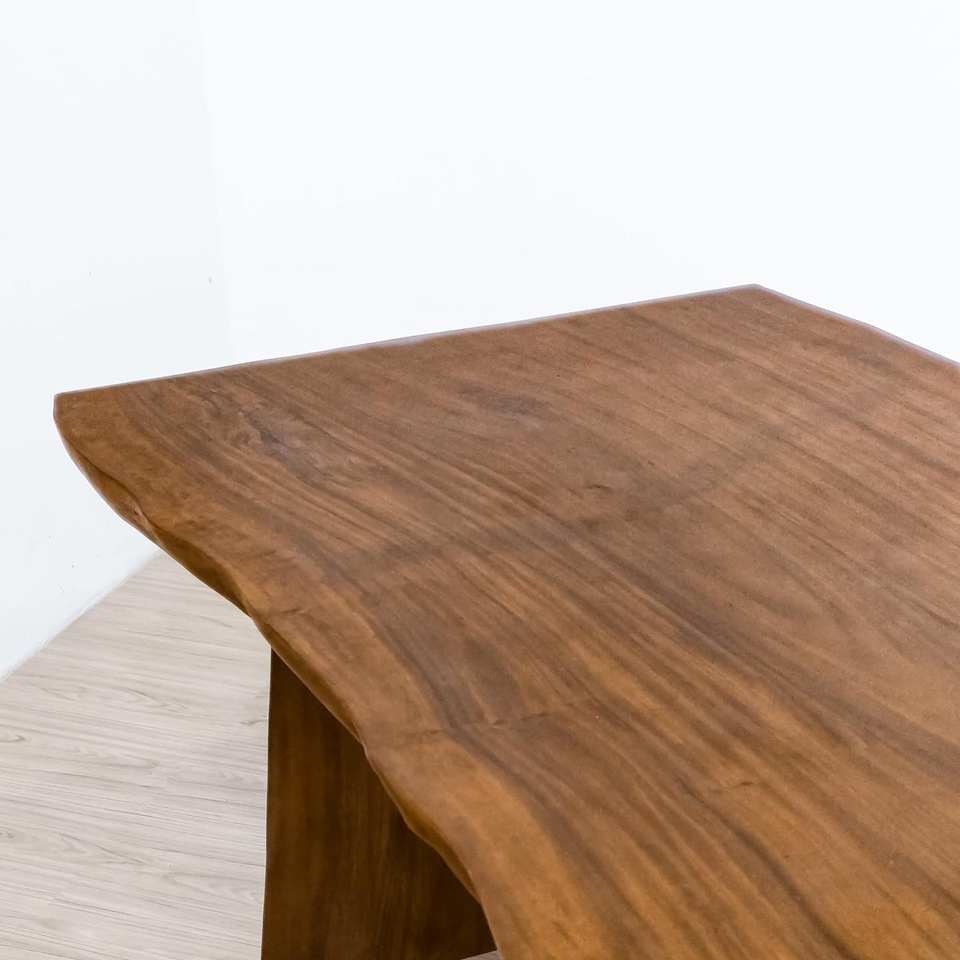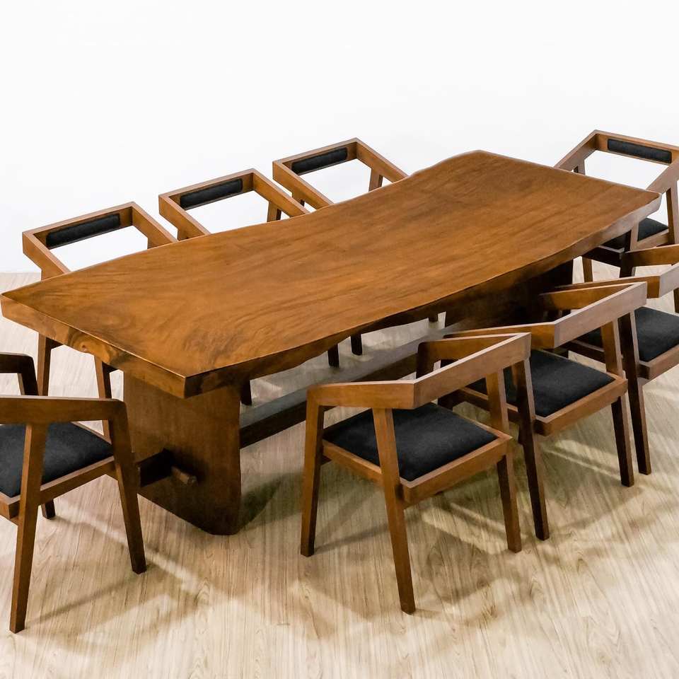 โต๊ะไม้เนื้อแข็งทรงโมเดิร์น งานแฮนด์เมดสุดหรู ทำจากไม้สัก ไม้มะฮอกกานี และไม้ซัวร์ ขอบธรรมชาติ สำหรับร้านอาหารระดับไฮเอนด์ โรงแรม และการใช้งานกลางแจ้ง