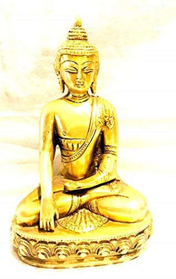 Exotic India 8" Inch Buddha Brass Statue With Kalash