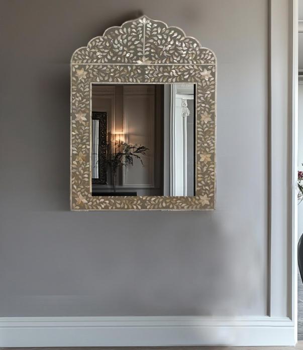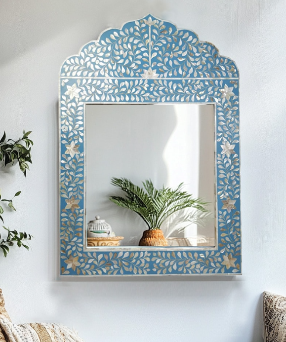 ที่แปลกใหม่ศิลปะอินเดียทำด้วยมือกรอบกระจกดีไซน์ mughal ใหม่ฝังมุกสีฟ้าสำหรับงานแต่งงานบาร์ Mitzvah ตกแต่งบ้าน