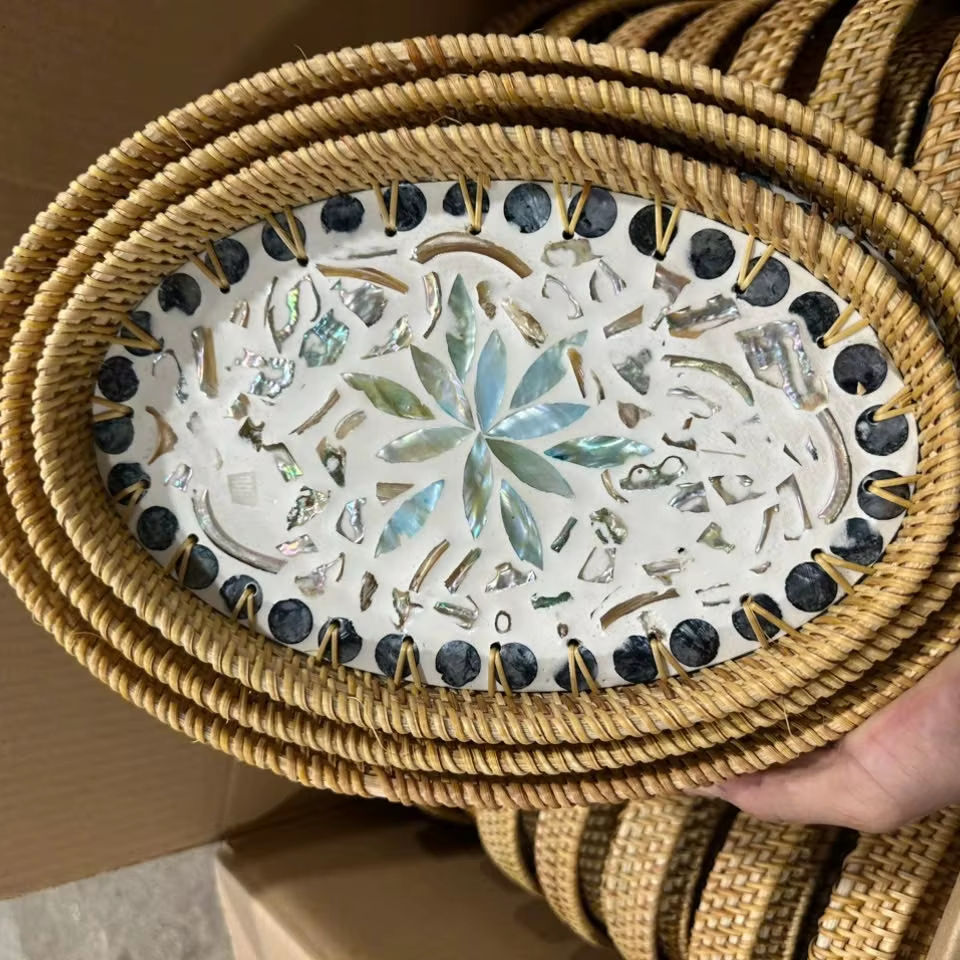 ถาดหวายลายมุกแปลกตา งานแฮนด์เมดสำหรับจัดระเบียบโต๊ะและตกแต่ง ผลิตในเวียดนาม