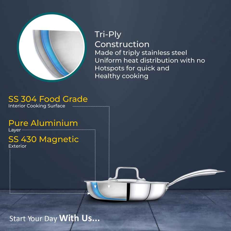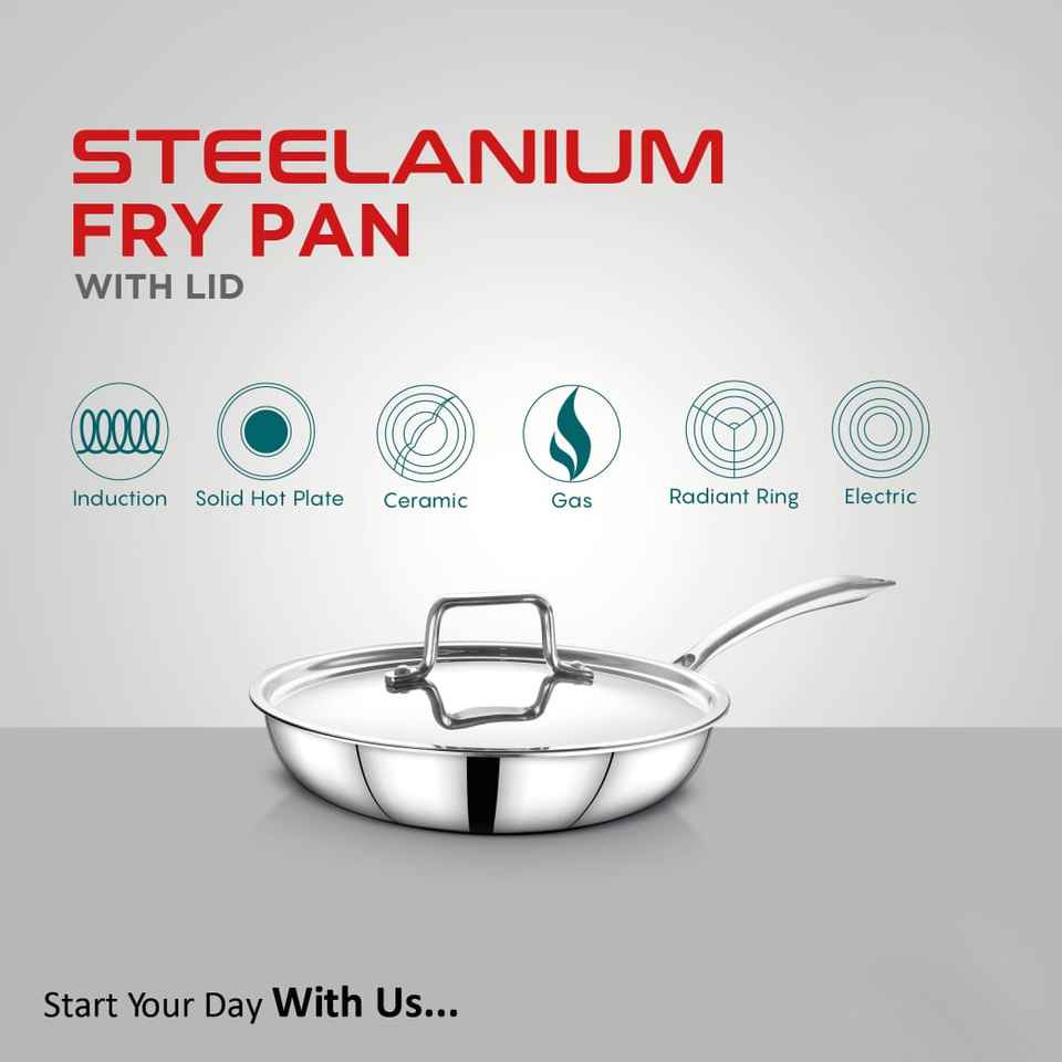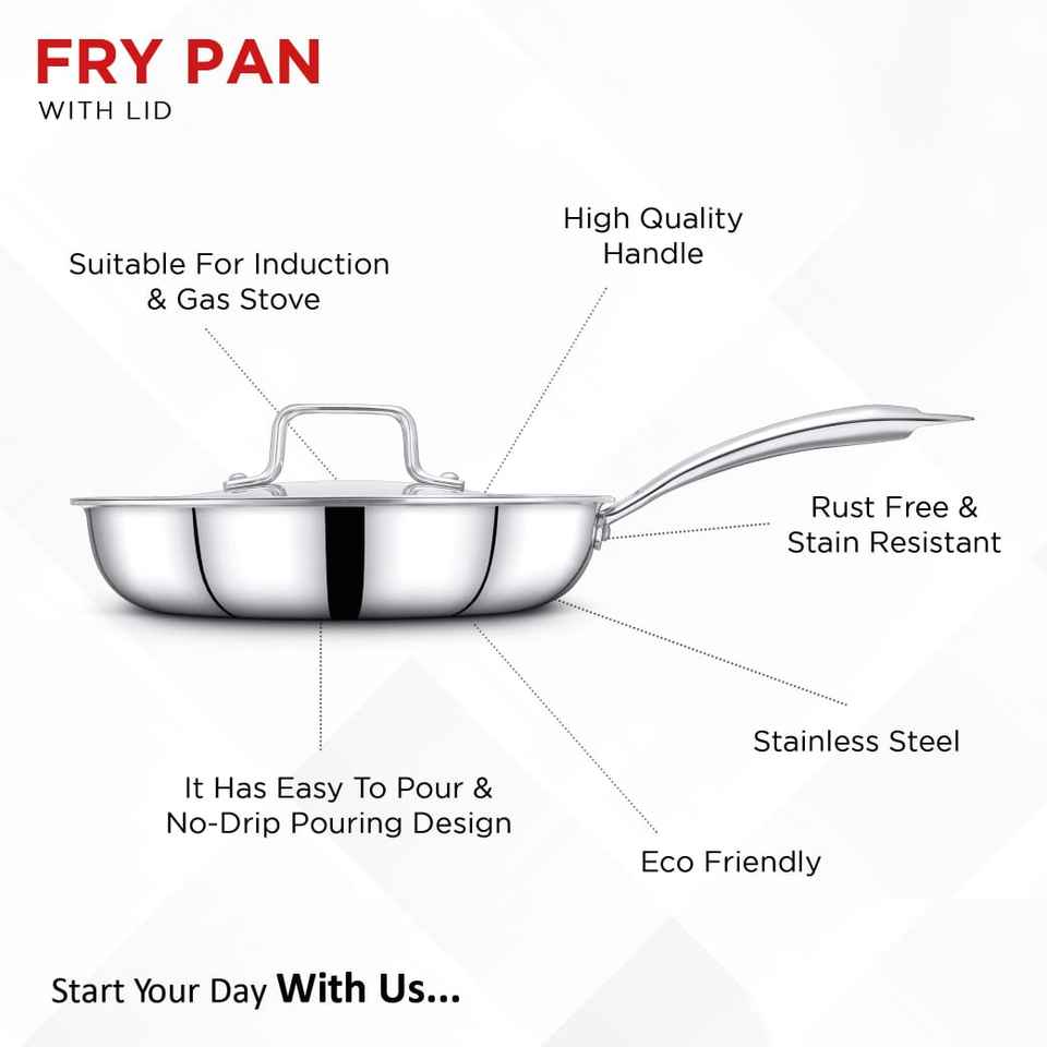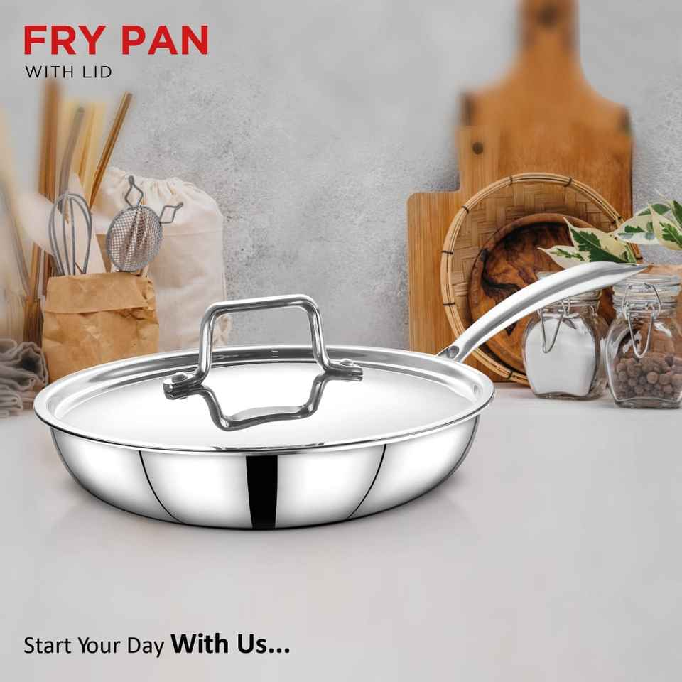 กระทะทอดสแตนเลสพร้อมฝาปิดดีไซน์ทนทานเครื่องครัวเกรดอาหารเคลือบสีเงินแปลกใหม่ทำความสะอาดง่าย