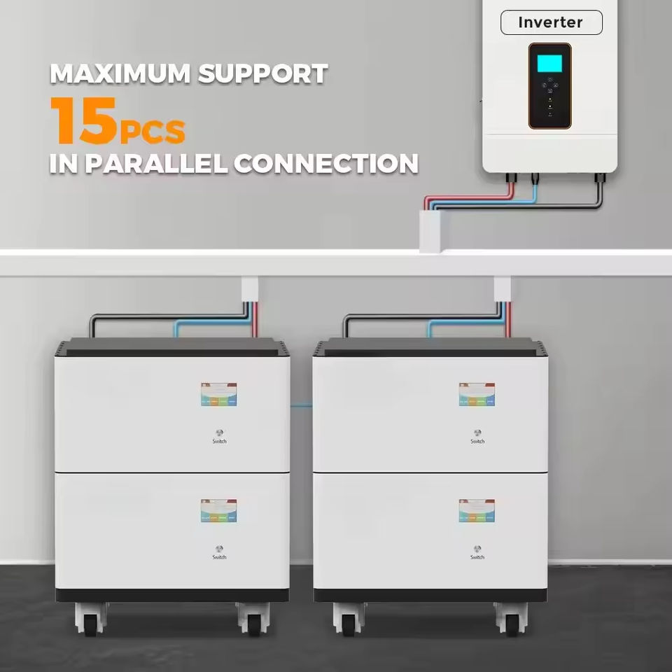 ระบบกักเก็บพลังงานภายในบ้านแบบขยายได้ 15 กิโลวัตต์ชั่วโมง 51.2 โวลต์ 300 แอมป์ชั่วโมง แบตเตอรี่ LiFePO4 แบบเรียงซ้อนได้ 280 แอมป์ชั่วโมง ระบบโซลาร์เซลล์แบบเชื่อมต่อกริด รองรับการสื่อสารผ่าน CAN พร้อมใช้งาน