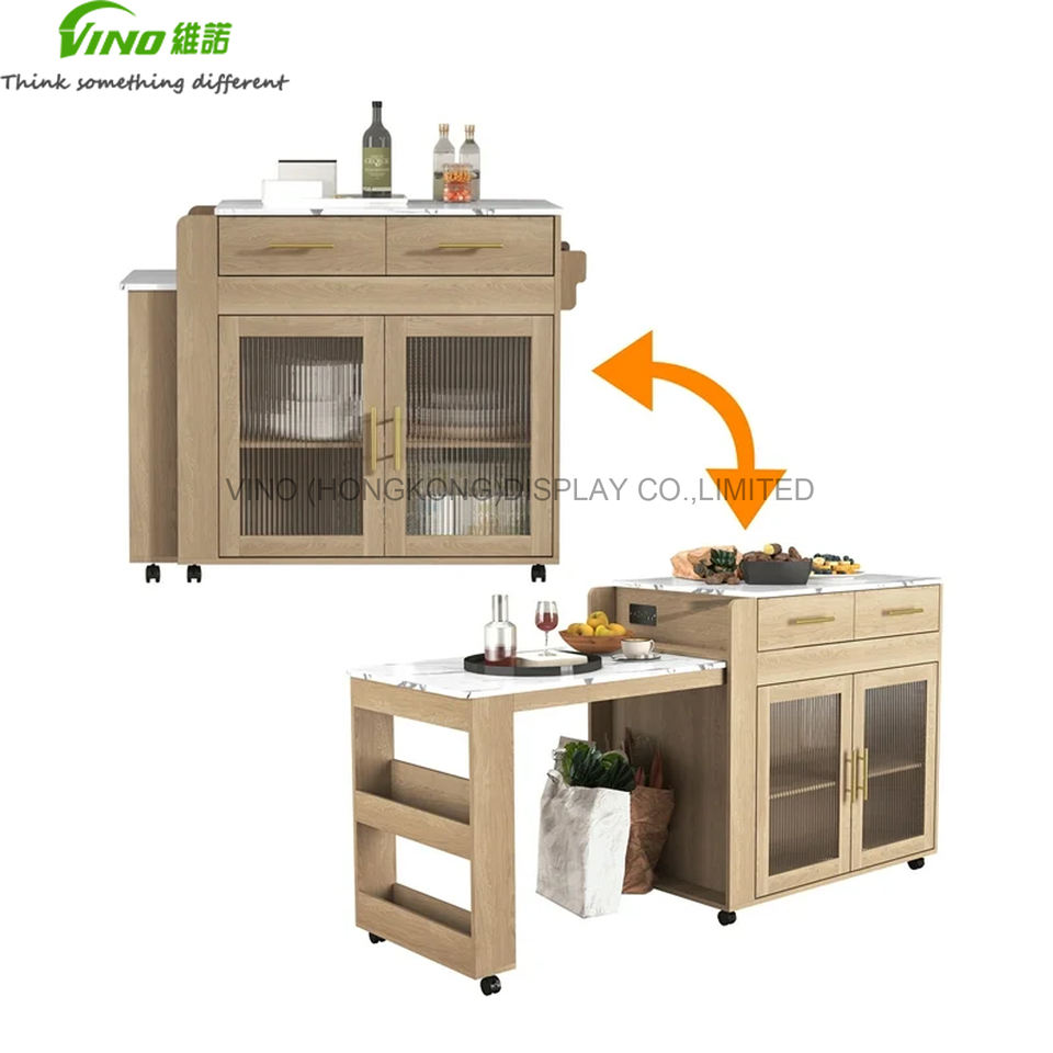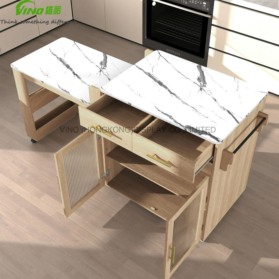 ชุดครัวแบบขยายได้พร้อมล้อเลื่อนและที่เก็บของ ตู้เก็บของในครัว