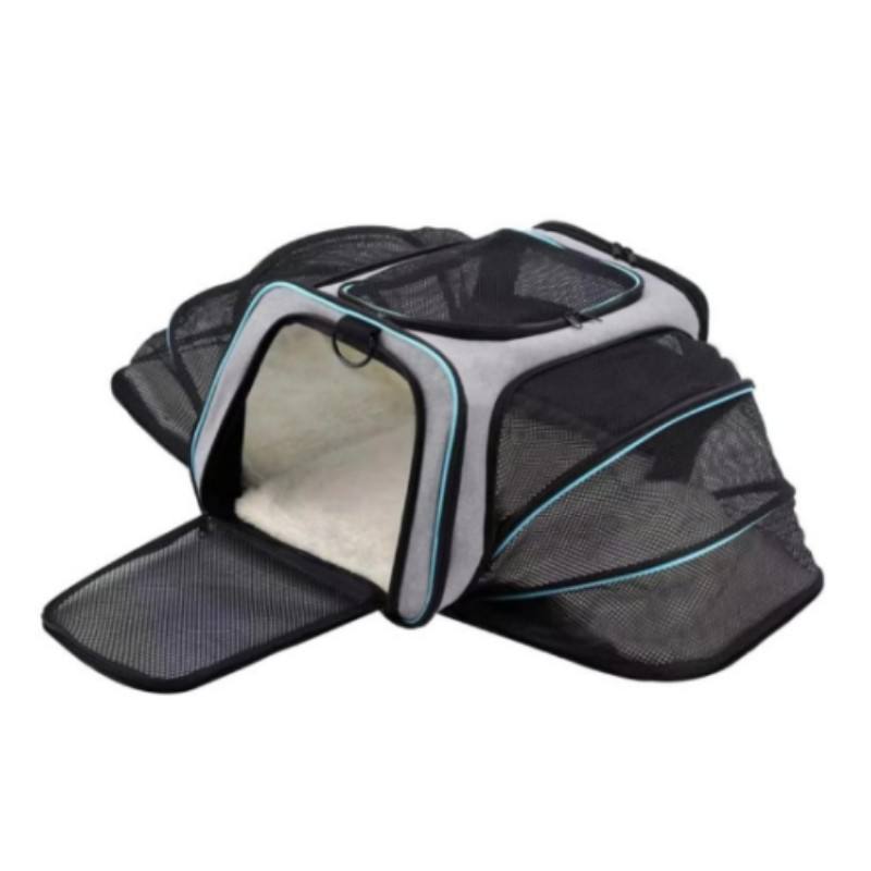 กระเป๋าใส่สัตว์เลี้ยงสะพายไหล่เดี่ยวขยายได้สำหรับแมวและสุนัข-แบบพกพาระบายอากาศได้ดีผ่านสายการบิน