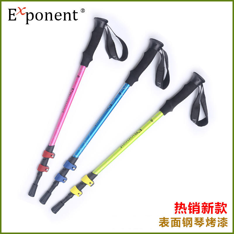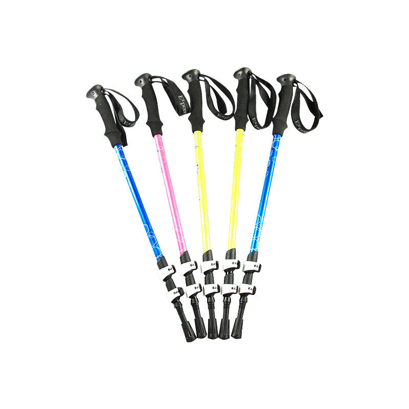 ไม้เท้าเดินป่าแบบปรับได้ 650-1350 มม. ทำจากอลูมิเนียมอัลลอยด์ สีฟ้าอมเขียว ปลายยาง 3 ท่อน