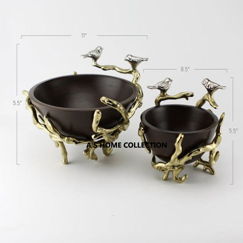 ชามไม้ดีไซน์แบบตั้งทำจากทองเหลืองสีน้ำตาลเข้มทำจากโลหะ