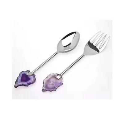 เซิร์ฟสลัดราคาแพงพร้อมด้ามอาเกตสีม่วงช้อนเสิร์ฟส้อมชุดสลัดสแตนเลสสำหรับห้องครัว