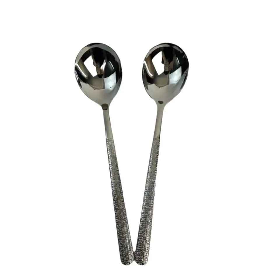 ชุดช้อนเสิร์ฟสลัดสแตนเลสขัดเงาสีเงินคุณภาพสูง ดีไซน์ใหม่ เป็นมิตรกับสิ่งแวดล้อม ปลอดภัยสำหรับเครื่องล้างจาน
