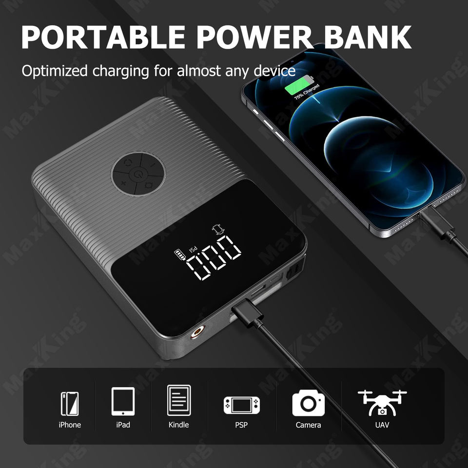 LED Light, Spark Proof, หน้าจอดิจิทัล, พาวเวอร์แบงค์, เครื่องจั๊มสตาร์ท, ที่สูบลมยางฟังก์ชัน