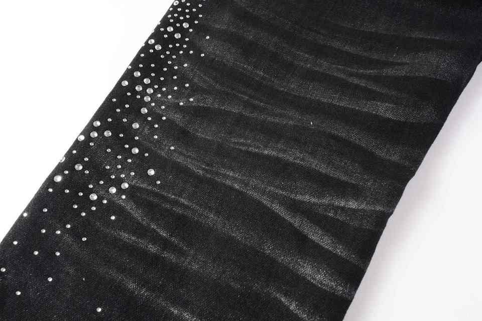 สัมผัสความเปล่งประกายอันหรูหราของคริสตัลความหนาแน่นสูงที่เพิ่มความสง่างามแบบราชวงศ์ให้กับกางเกงยีนส์ประดับเพชรที่เป็นเอกลักษณ์ของคุณ