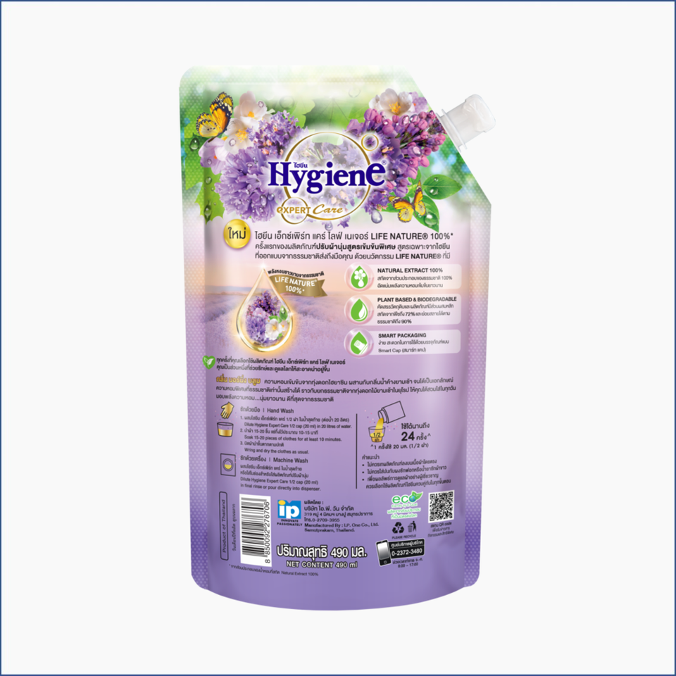 น้ำยาปรับผ้านุ่มกลิ่นไวโอเล็ตเช้า490มล. สุขอนามัยเสริมเอนไซม์ทำความสะอาดธรรมชาติสิ่งทอ