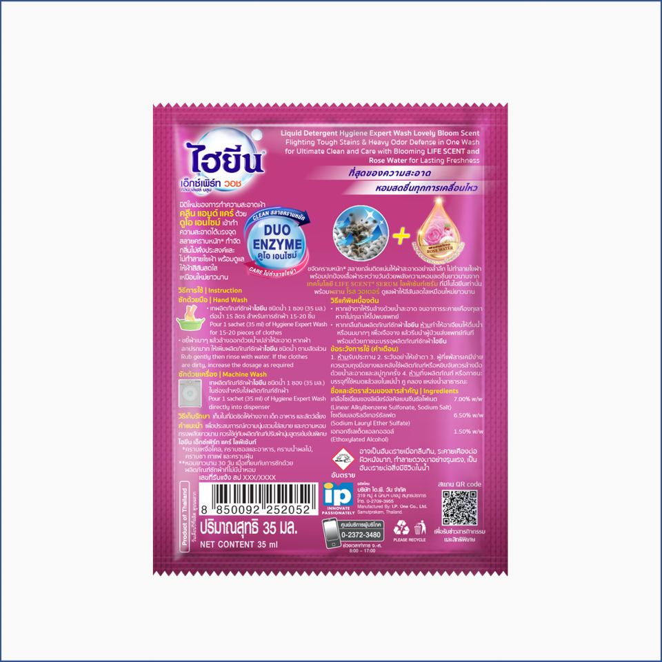 น้ำยาซักผ้าเพื่อสุขอนามัยของผู้เชี่ยวชาญน้ำยาซักผ้า35มล. กลิ่นหอมน่ารักสำหรับเสื้อผ้าและสิ่งทอ