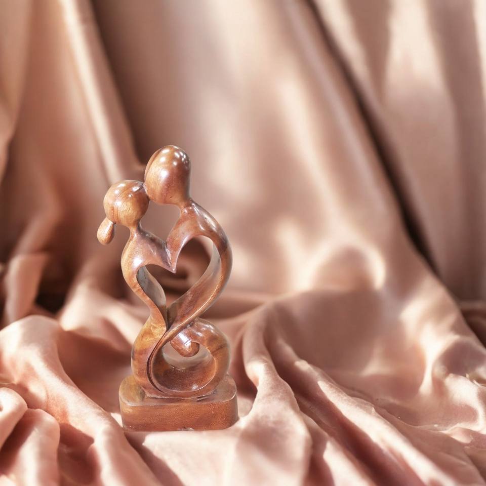 งานฝีมือไม้แกะสลักศิลปะงานฝีมือที่ทำจากไม้ "" จูบนิรันดร์ "" ด้วยมือขัดพื้นผิวสำหรับตกแต่งบ้าน