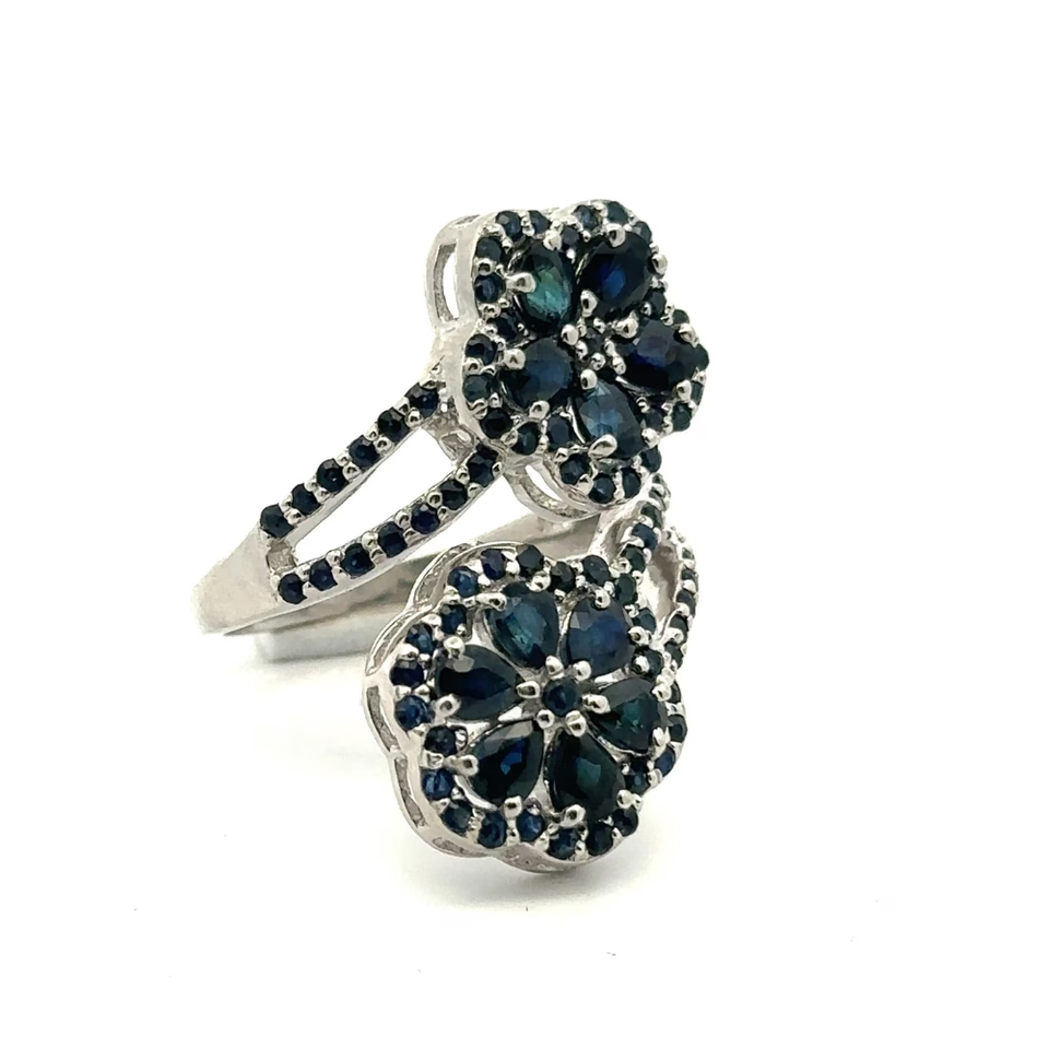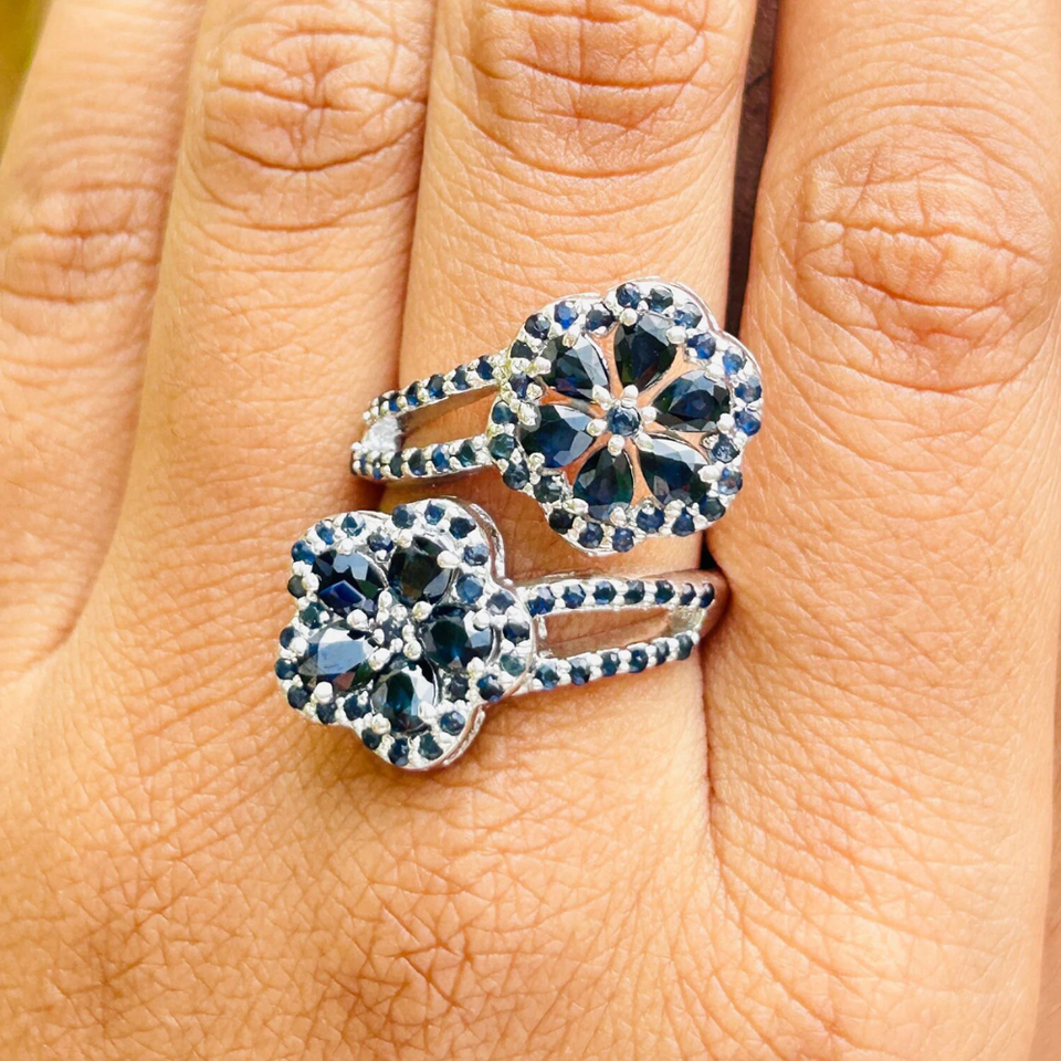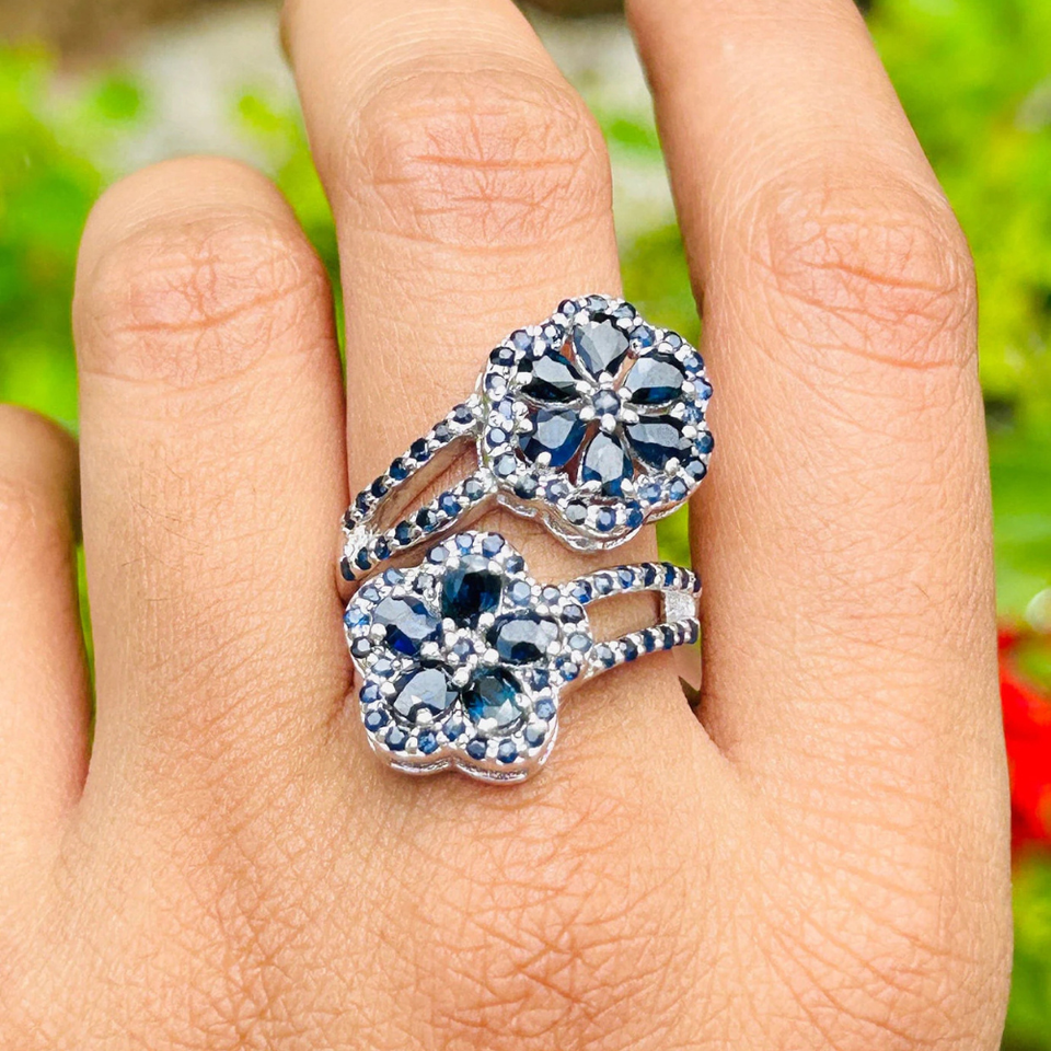 แหวนเงินแท้ลายดอกไม้คู่สีฟ้าแซฟไฟร์925น่ารักเครื่องประดับชั้นดีดีไซน์ไม่ซ้ำใครสำหรับงานแต่งงาน