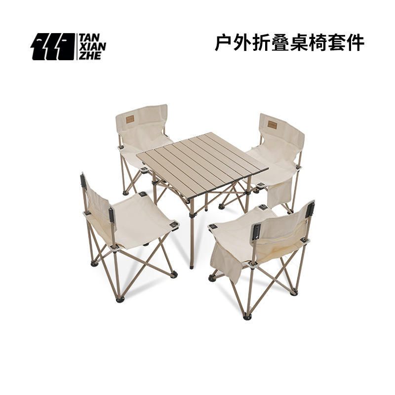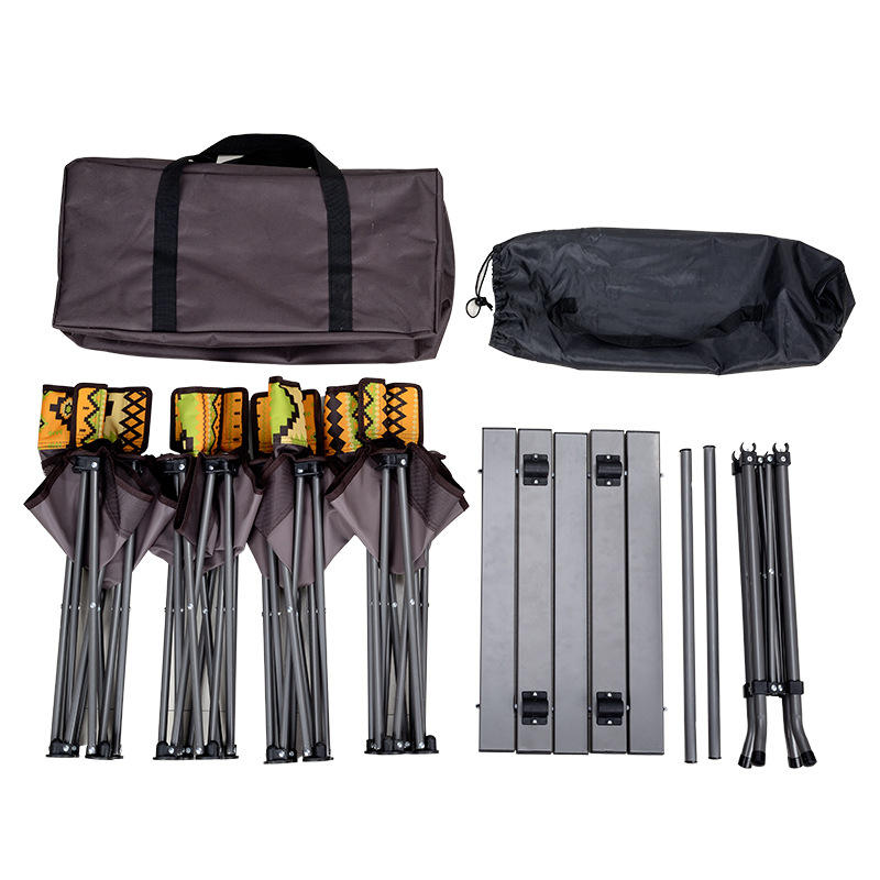 เอ็กซ์พลอเรอร์ชุดโต๊ะและเก้าอี้พับกลางแจ้ง 5 ชิ้นอลูมิเนียมอัลลอยด์แบบพกพาปิคนิคบาร์บีคิวเฟอร์นิเจอร์แคมป์ปิ้ง