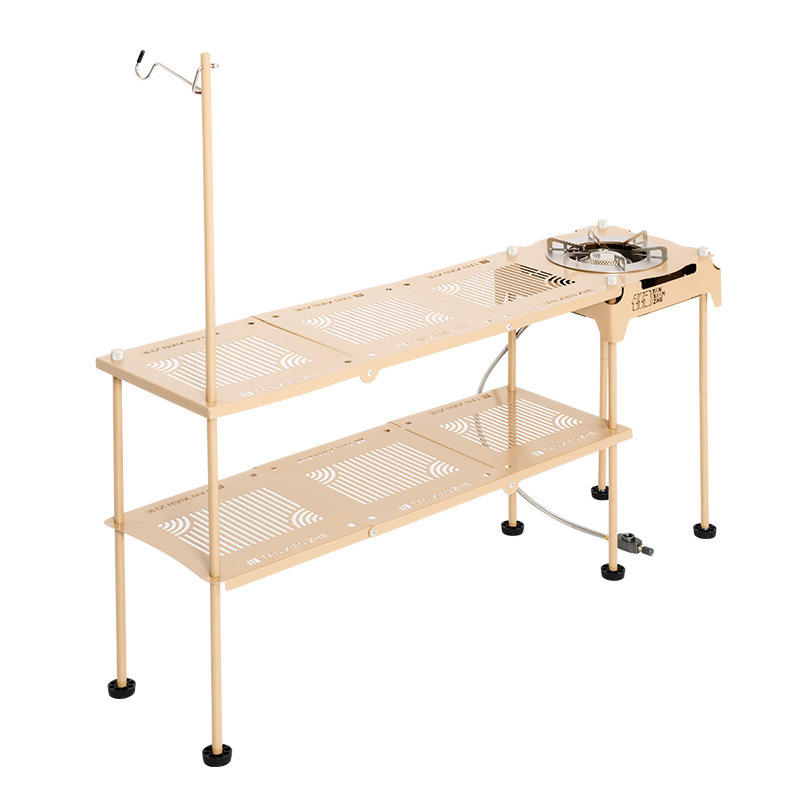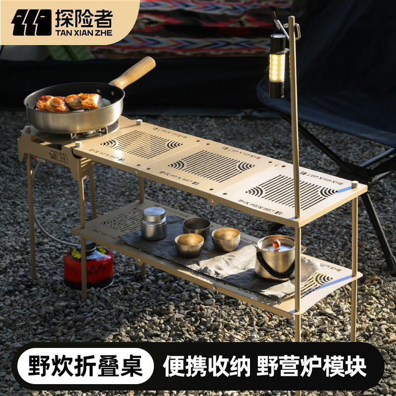โต๊ะพับเหล็กสำหรับตั้งแคมป์กลางแจ้ง Explorers Tactical ขนาด 77.5x20x39.5 ซม. พกพาสะดวก น้ำหนักเบา พร้อมเตาแก๊ส