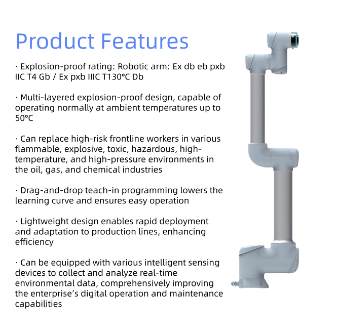โซลูชันหุ่นยนต์ป้องกันการระเบิด ได้รับการรับรองมาตรฐาน ATEX หุ่นยนต์โคบอทสำหรับสภาพแวดล้อมอันตราย หุ่นยนต์ 6 แกนสำหรับการปฏิบัติงานที่อันตราย ทดแทนการใช้งานด้วยคน