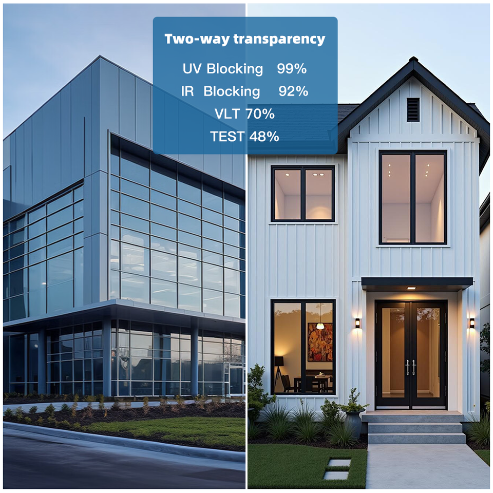 ฟิล์มกระจก PET แบบมองเห็นทางเดียว ป้องกันการระเบิด ป้องกันรังสียูวี ป้องกันความร้อน ป้องกันการมองเห็น ป้องกันความร้อน สำหรับกระจกอาคาร