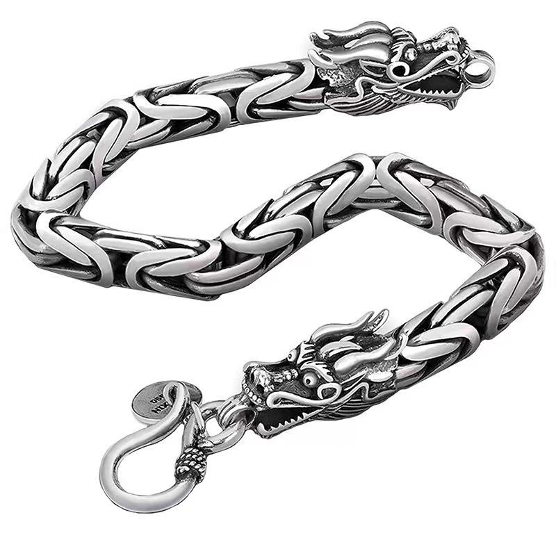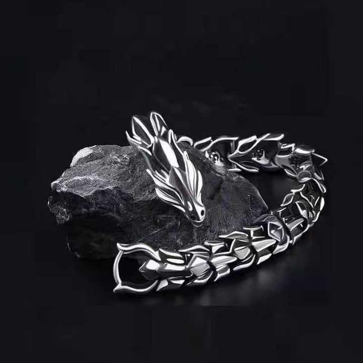 กำไลข้อมือผู้ชายลายมังกรหลากสีสไตล์เรโทรพังก์ฮิปฮอป ดีไซน์หัวมังกร ลวดลายมังกร แฟชั่น Sehe