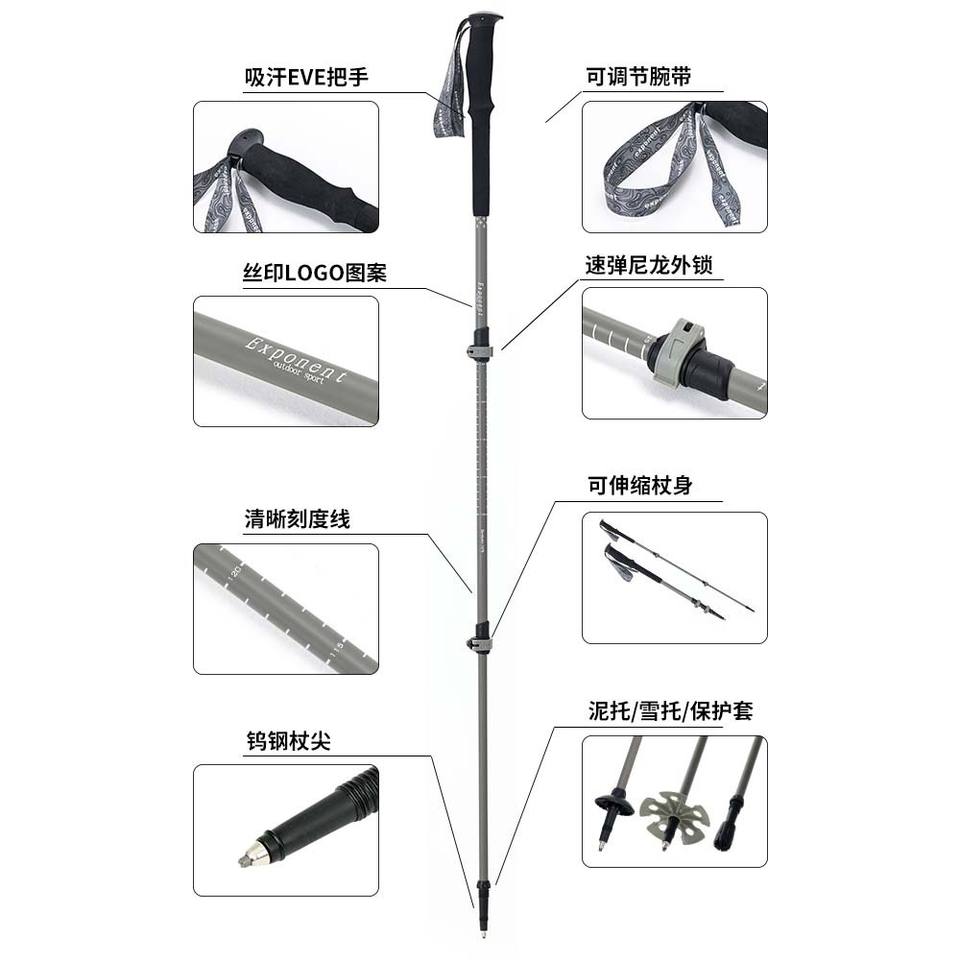 ไม้เท้าเดินป่า Exponent Trekking Poles 7075 อลูมิเนียมอัลลอยด์ 3 ท่อน ป้องกันการลื่น ไม้เท้าปีนเขา ปลายยาง