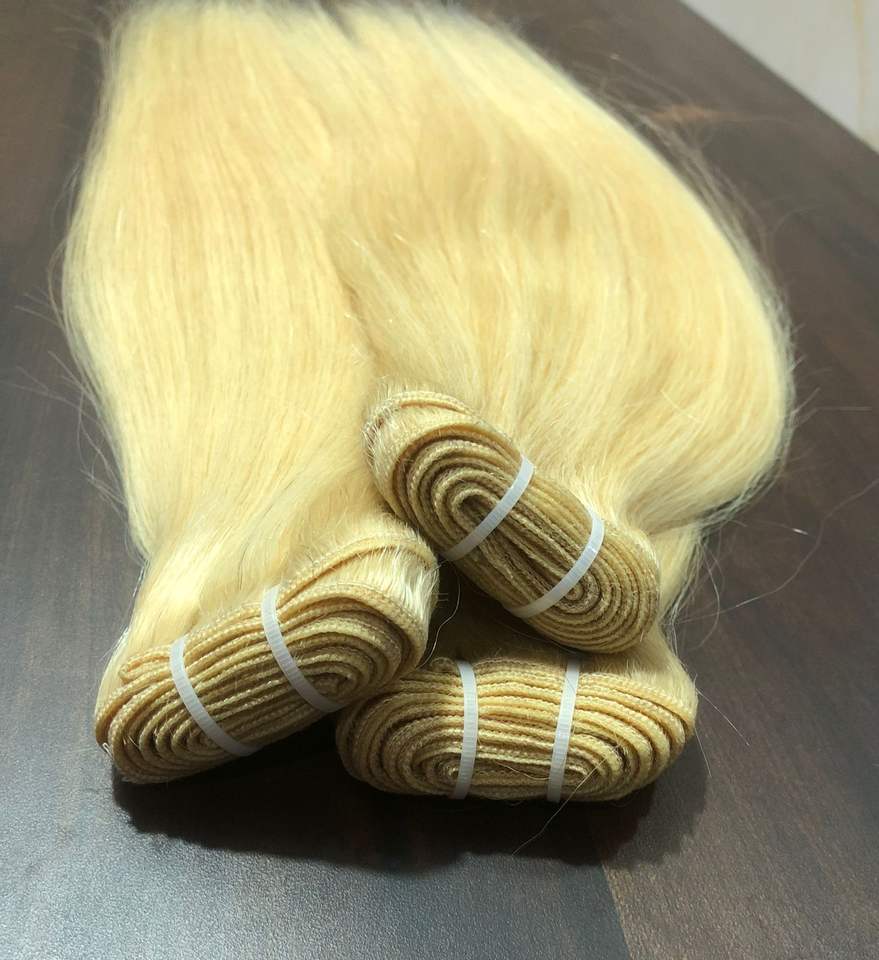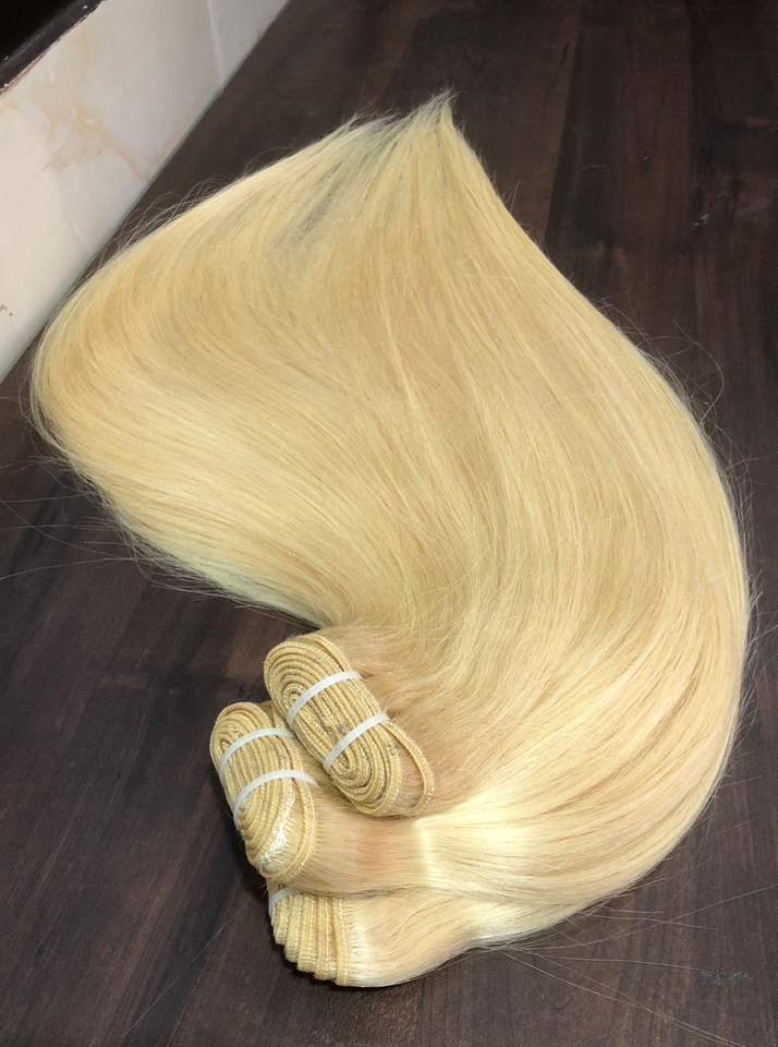 ส่งออกผมแท้ 100% จากอินเดีย แบบเวอร์จิ้นเรมี่ ต่อผมแบบดอนเนอร์เดี่ยว เย็บสองชั้น ขนาด 22 นิ้ว # 613 แฮร์พีชแบบตรง 8A-12A สำหรับต่อผม ง่ายต่อการใช้งาน