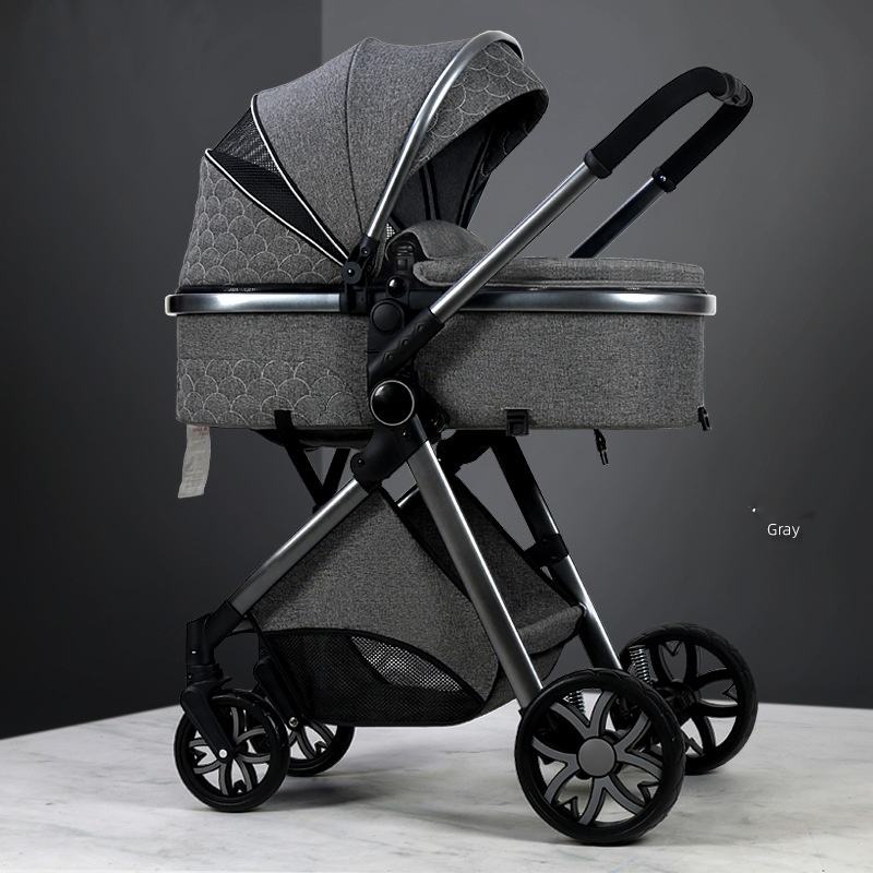 รถเข็นเด็กแบบสี่ล้อ รุ่นสูง น้ำหนักเบา ปรับนั่ง-นอน พับได้ ระบบกันกระแทก สองทิศทาง โครงเหล็ก สำหรับเด็กแรกเกิด
