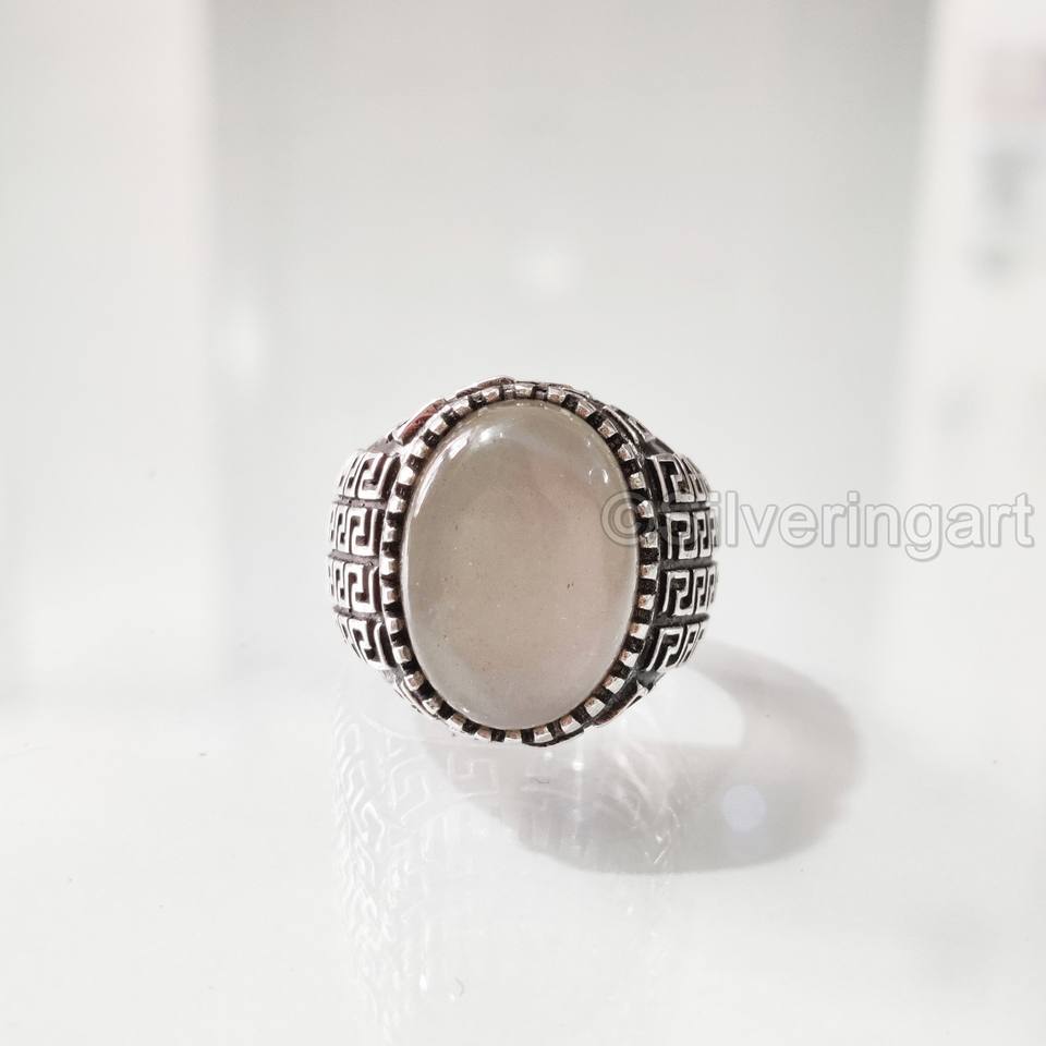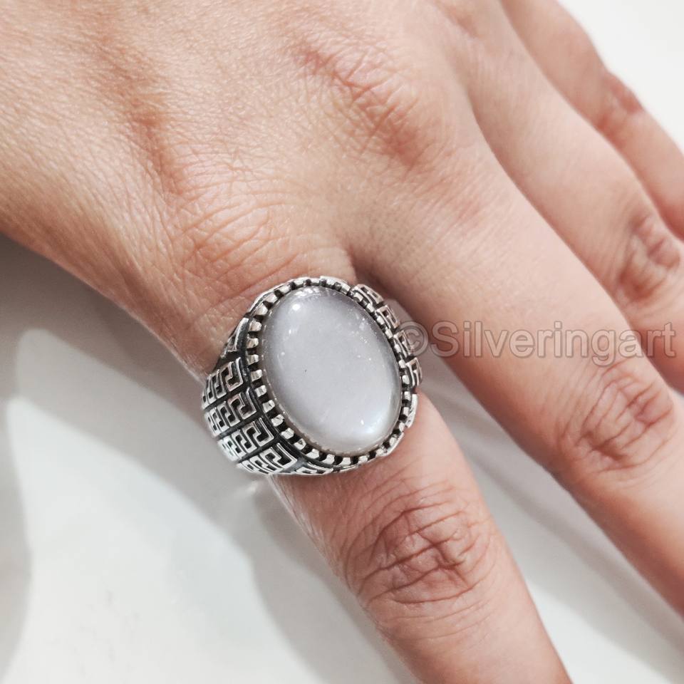 แหวนเงินแท้ 925 ประดับพลอยมูนสโตนสีเทาธรรมชาติ สำหรับผู้ชาย ของขวัญคริสต์มาส ทุกขนาด น้ำหนักมาก ประจำเดือนมิถุนายน