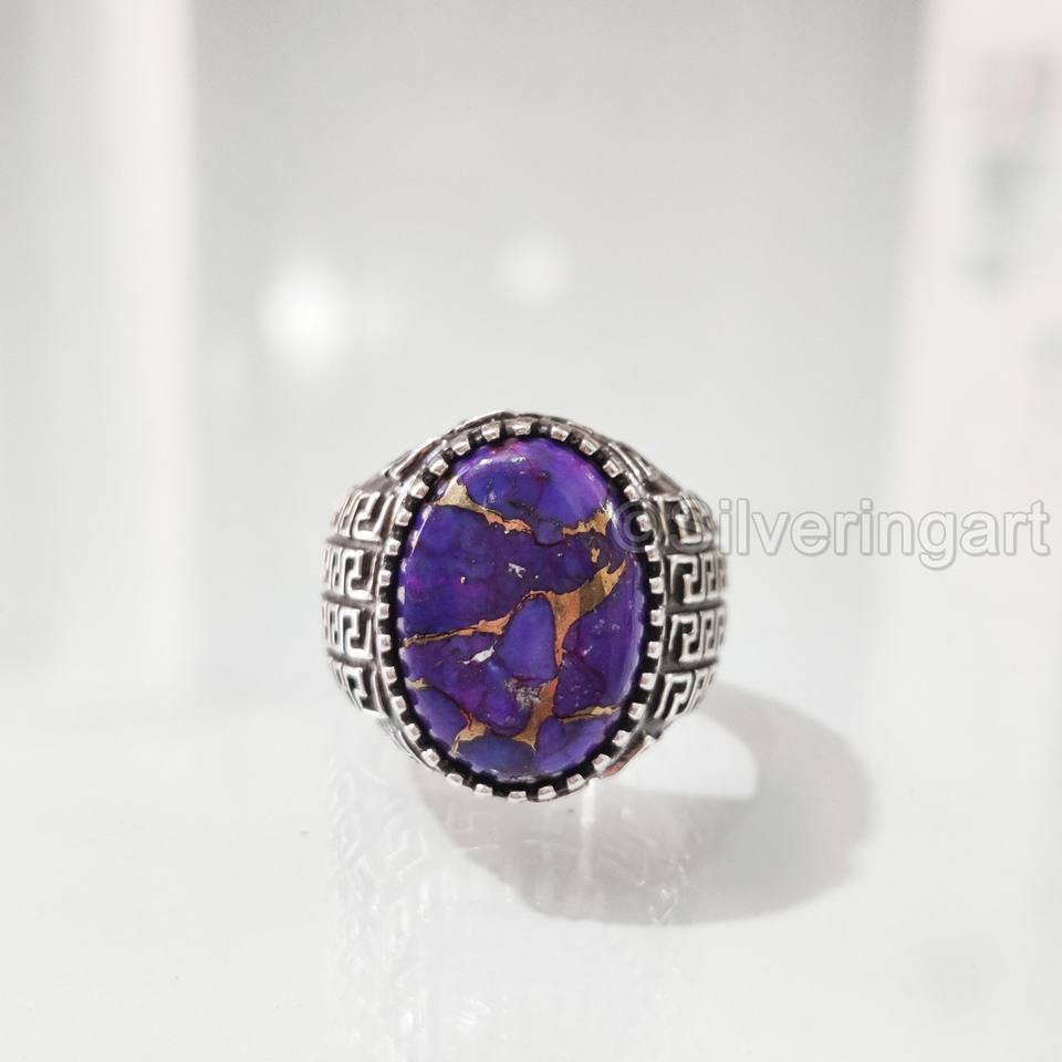 แหวนผู้ชายส่งออกแหวนธรรมชาติสีม่วงทองแดงเทอร์ควอยส์พลอย December แหวนพลอยอัญมณีอาหรับเครื่องประดับชั้นดี925แหวนเงินสเตอร์ลิง
