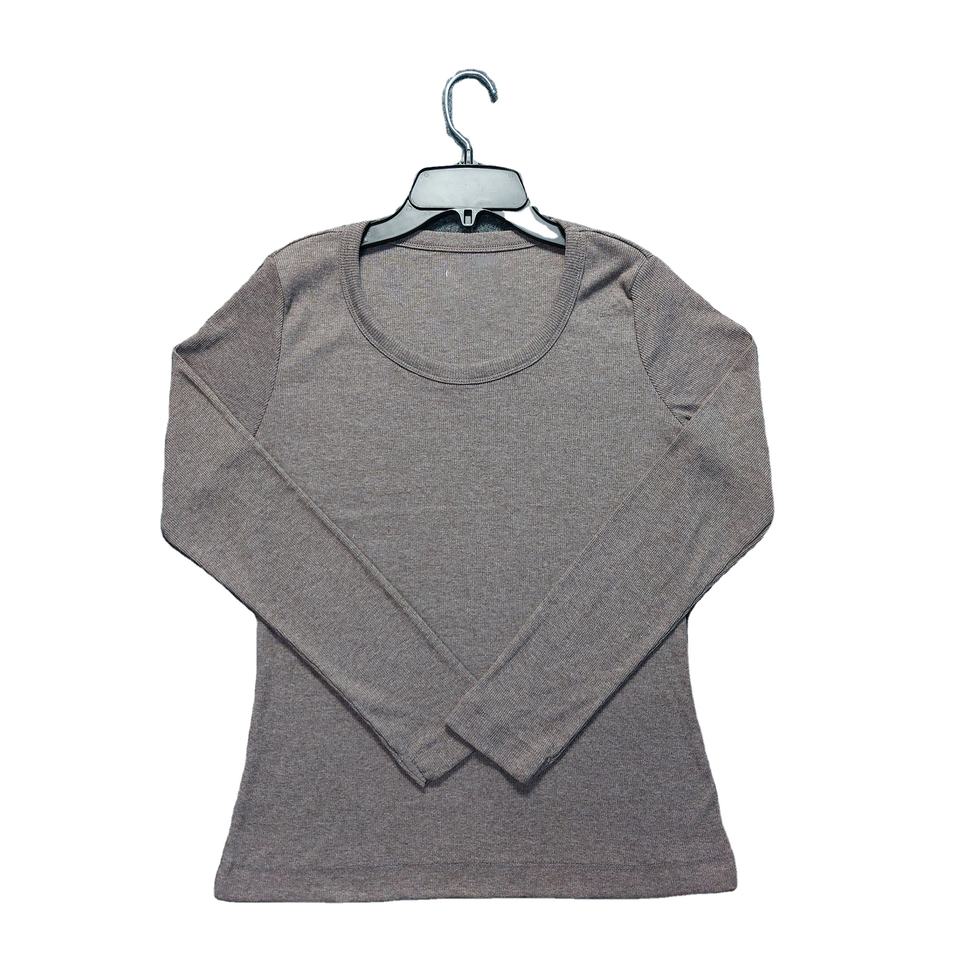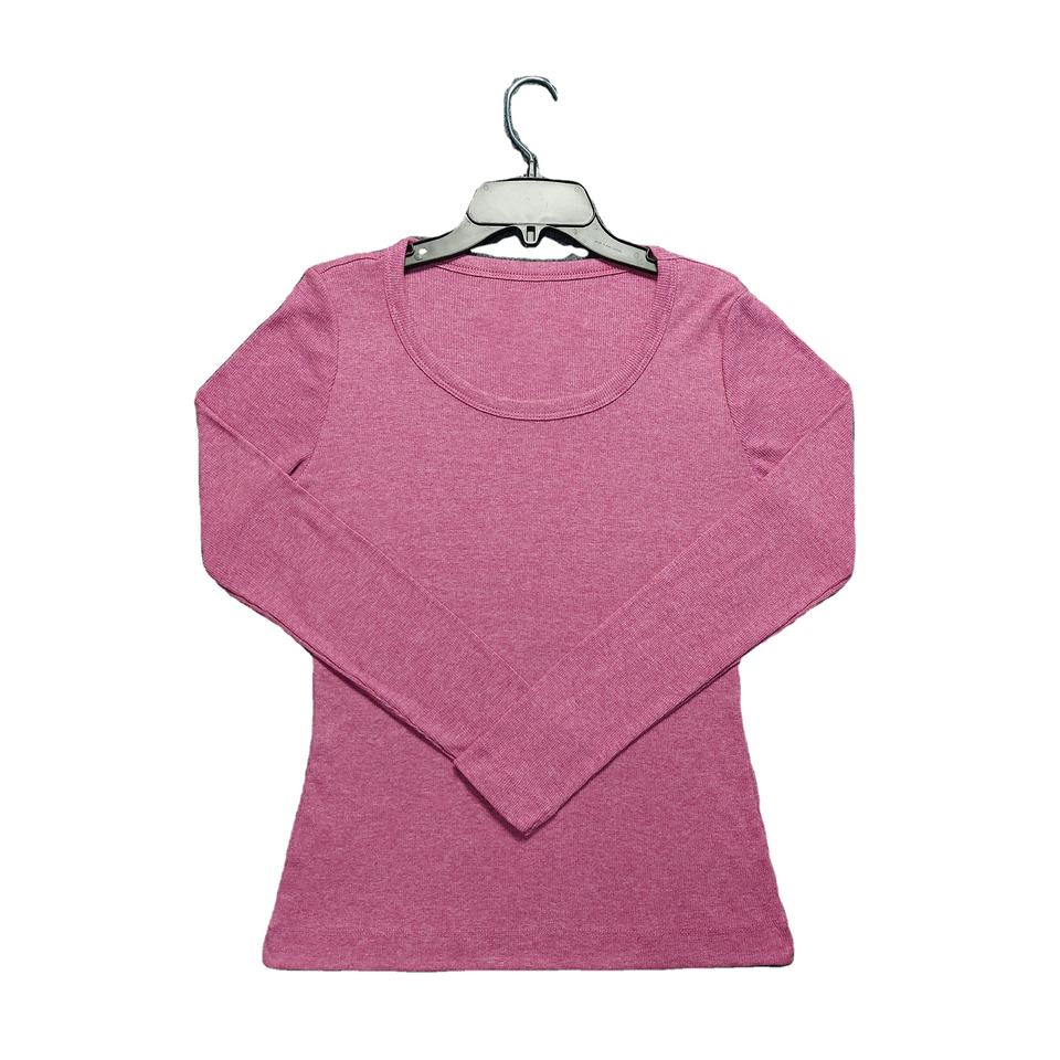 เสื้อยืดผู้หญิงคอกลมแขนยาวทรงสลิมฟิตแบบกำหนดเองเสื้อยืดสีทึบทำจากโรงงาน