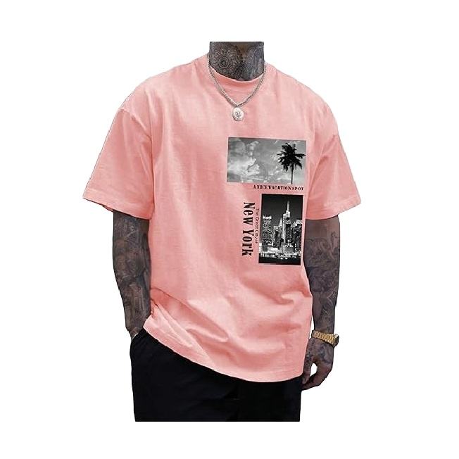 เสื้อยืดคอกลมแขนสั้นผู้ชายไซส์ใหญ่พิเศษ ระบายอากาศได้ดี พิมพ์ลาย ผ้าเจอร์ซีย์ 100% ผ้าฝ้าย ผลิตจากโรงงานในบังกลาเทศ สำหรับส่งออก