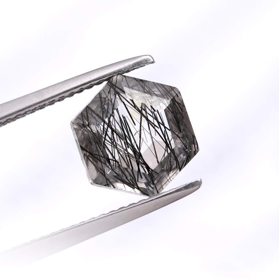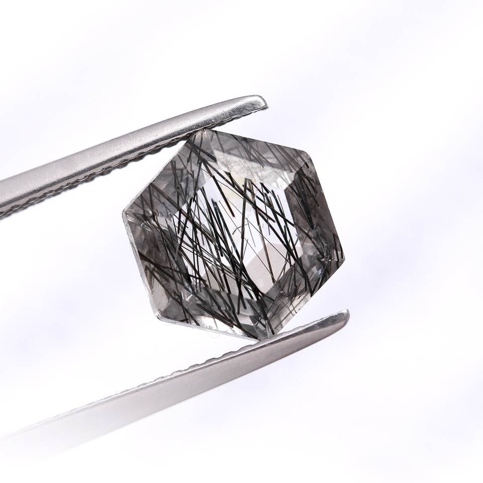 พลอยควอตซ์เจียระไนเหลี่ยมเพชรพลอยธรรมชาติสีดำ100% 100ชิ้นทำจากพลอยทัวร์มาลีนรูปหกเหลี่ยมแบบหลวมสำหรับทำเครื่องประดับ